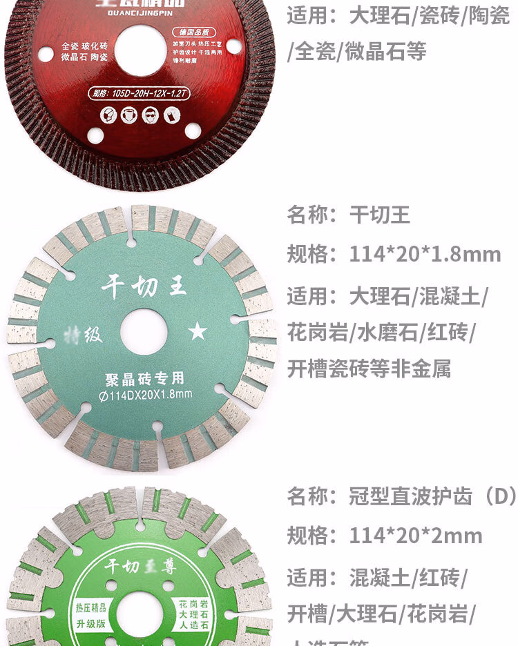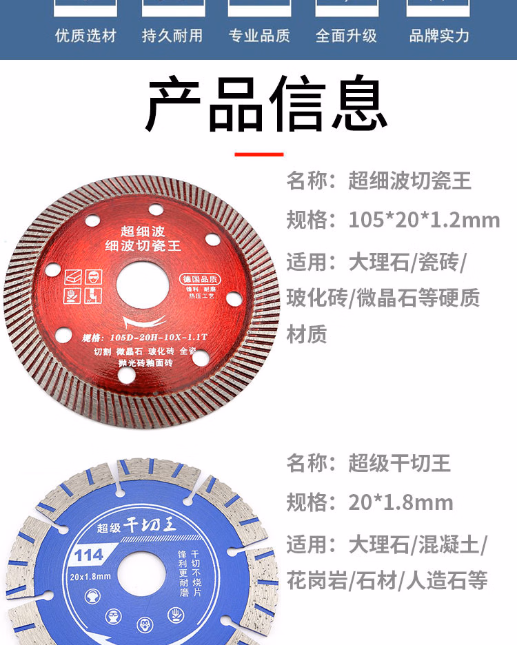 > 安达通 金刚石材切割片 瓷砖混凝土磨片锯片瓷砖片 114石材开槽片【超级干切王蓝】