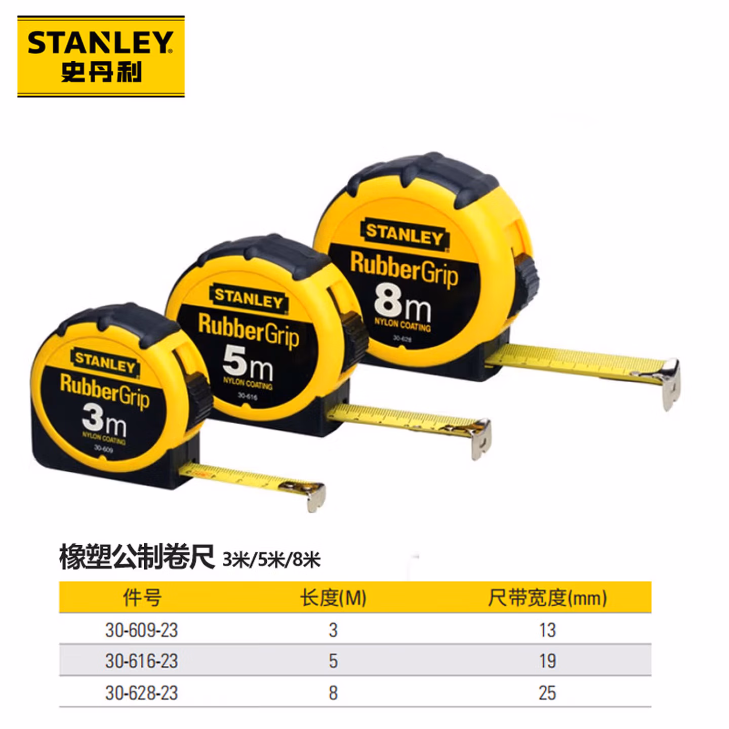 > 史丹利(STANLEY)30-628-23 橡塑公制卷尺8m 高精度耐磨钢卷尺