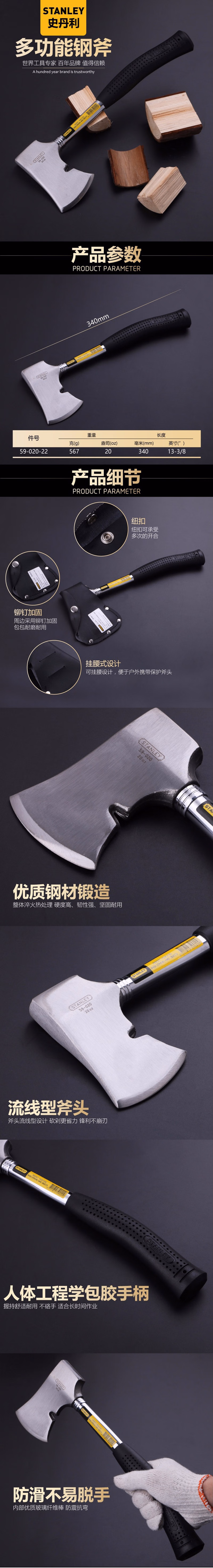 > 史丹利(STANLEY)钢斧20oz 木工斧伐木斧消防逃生斧园林斧头工业钢柄 59-020-22