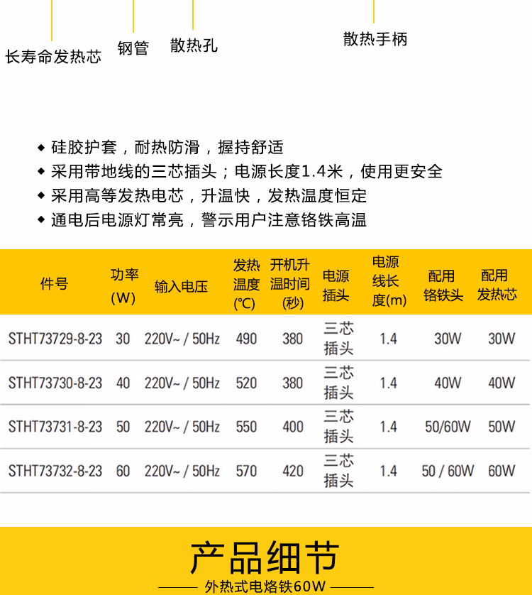 > 史丹利(STANLEY)50W外热式恒温电烙铁家用电热铁电子维修电焊笔STHT73731-8-23