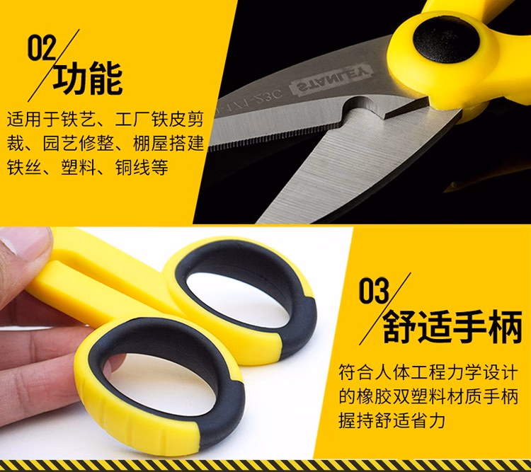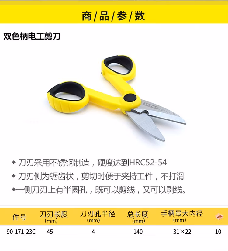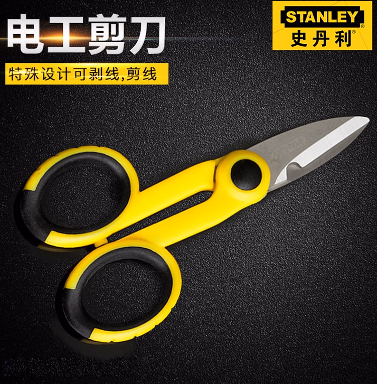 > 史丹利(STANLEY)工具 双色柄电工剪刀不锈钢线槽剪线剥线多功能锯齿剪刀140mm 双色柄电工剪刀140mm 90-171-23C