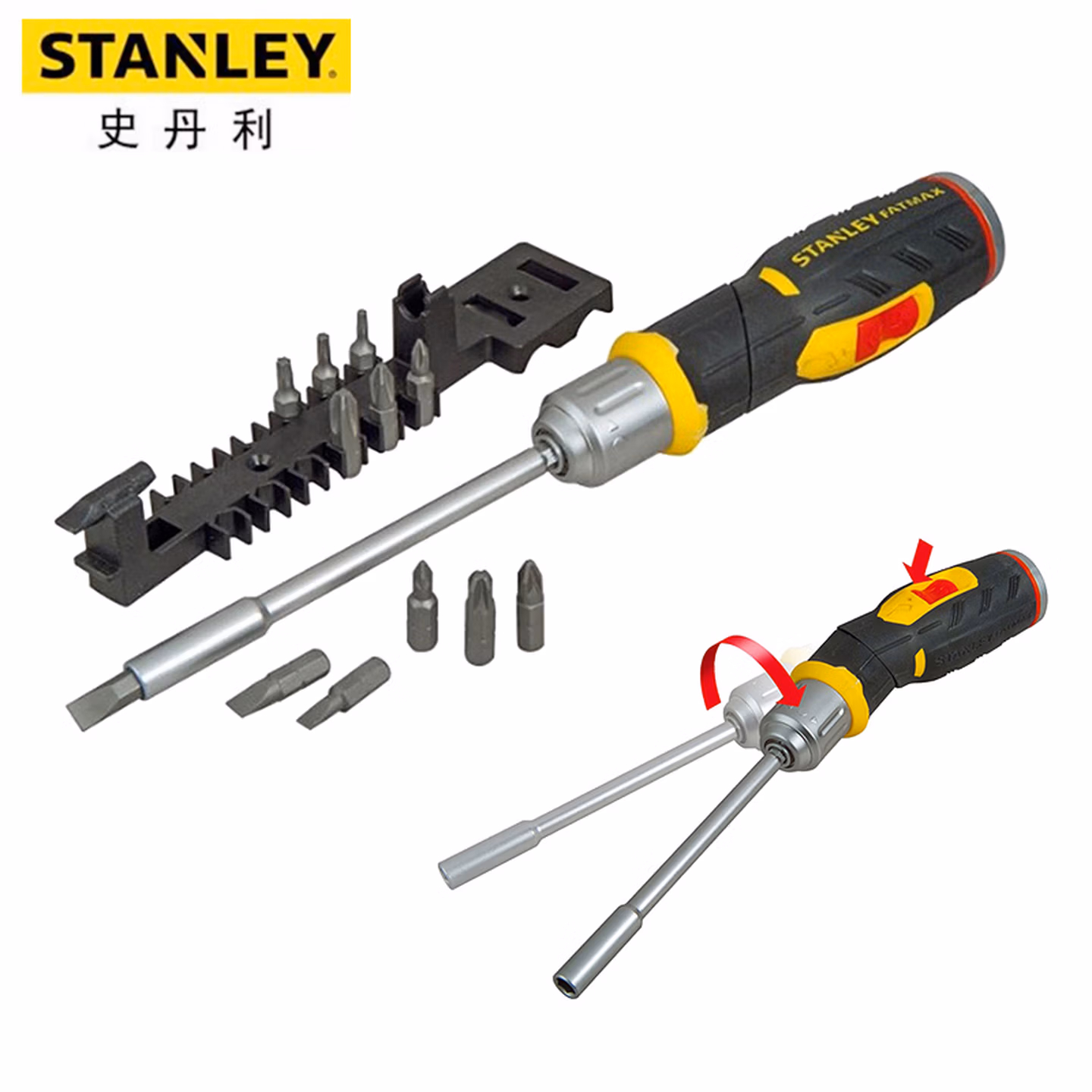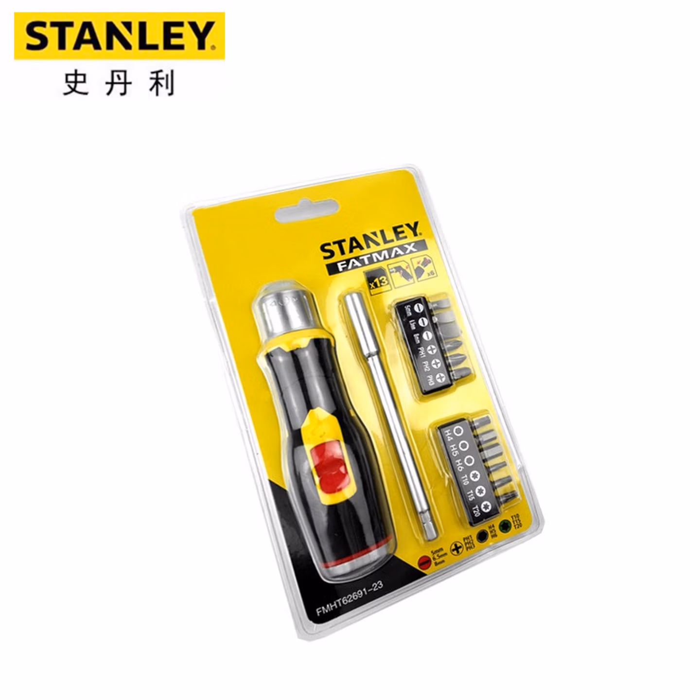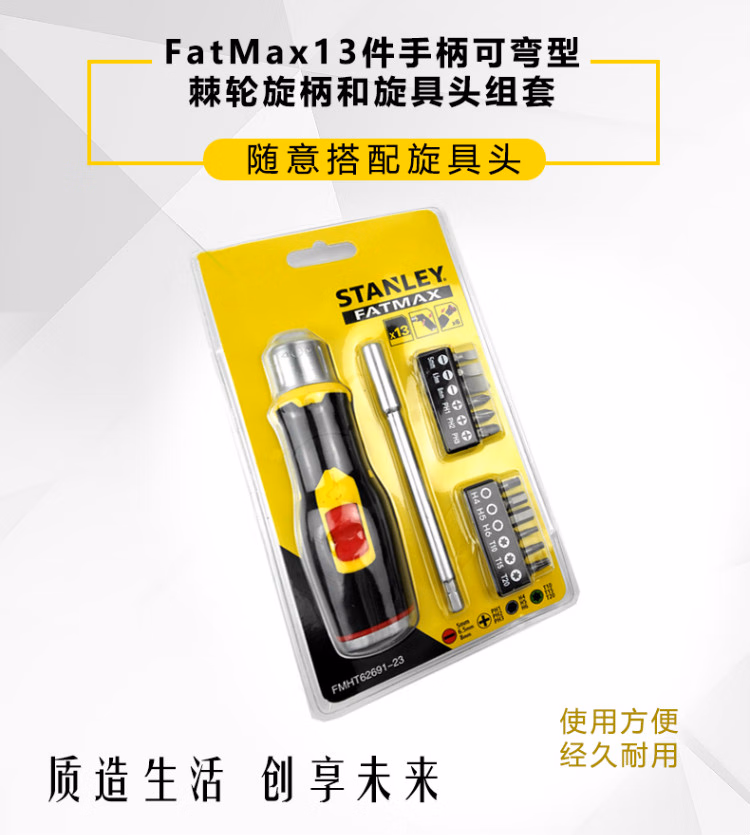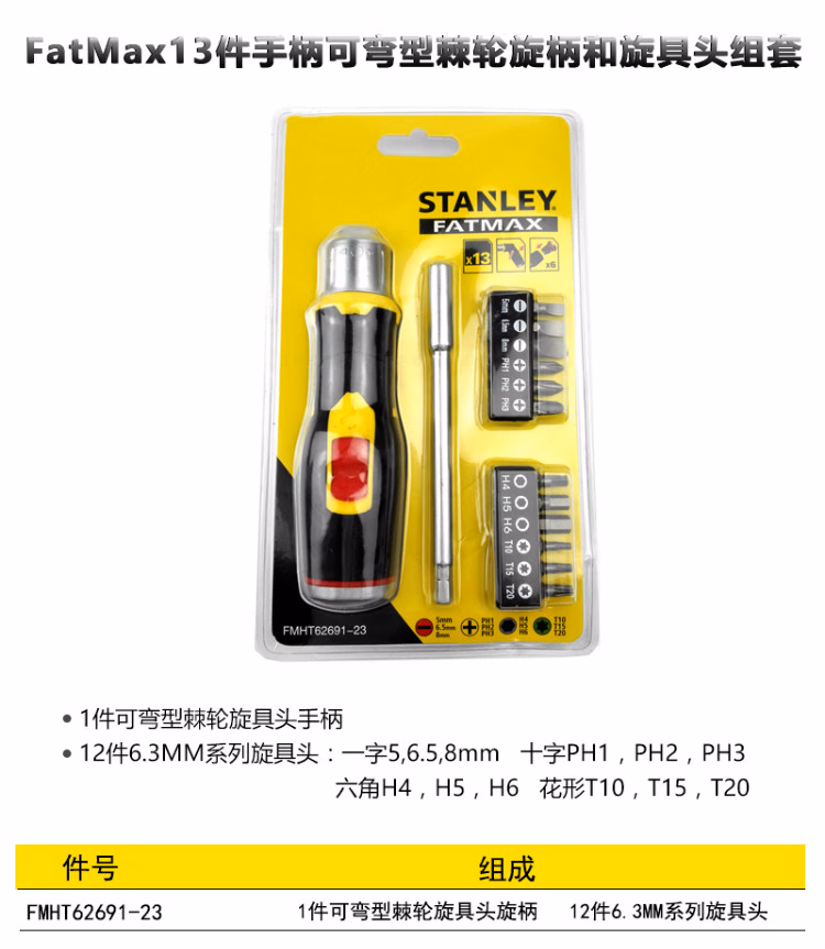 > 史丹利(STANLEY)13件手柄可弯型棘轮旋柄螺丝刀和旋具头组套FMHT62691-23