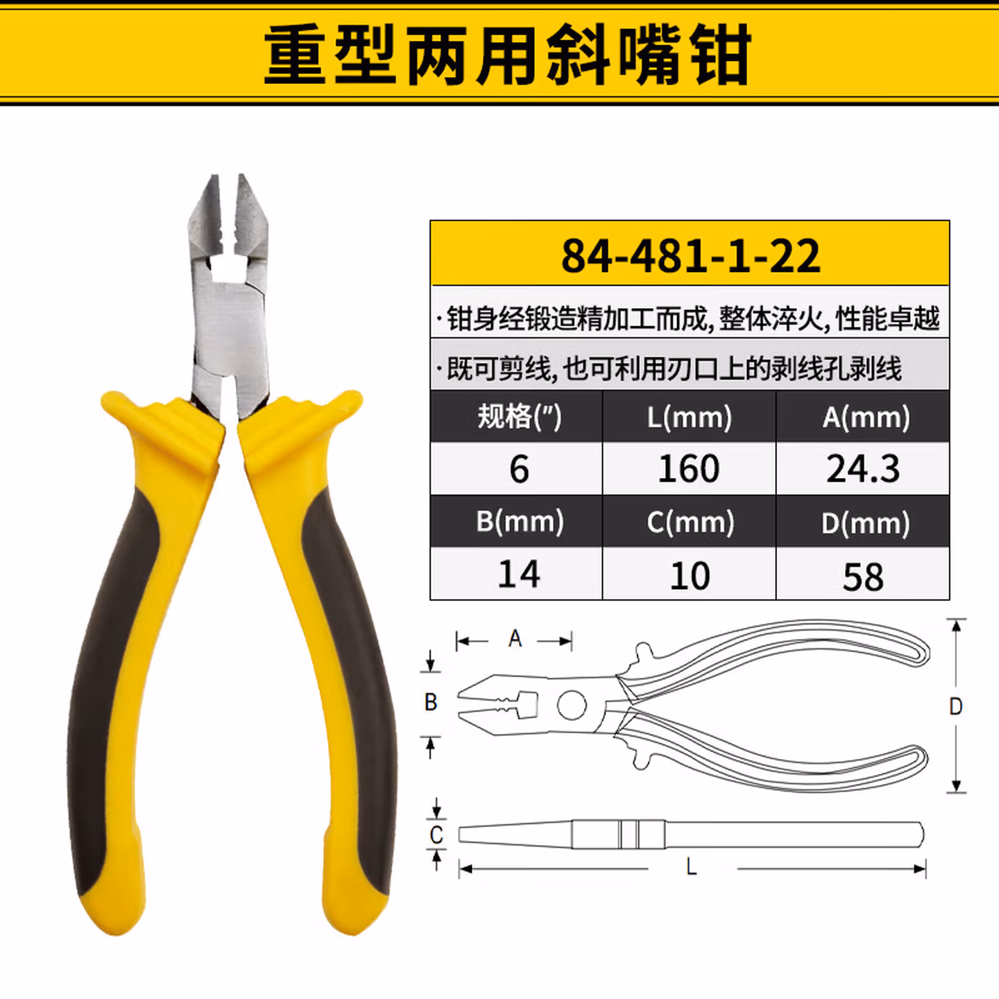 史丹利(STANLEY)重型两用斜嘴钳剪线钳斜口钳电工省力钢丝钳偏嘴钳6英寸84-481
