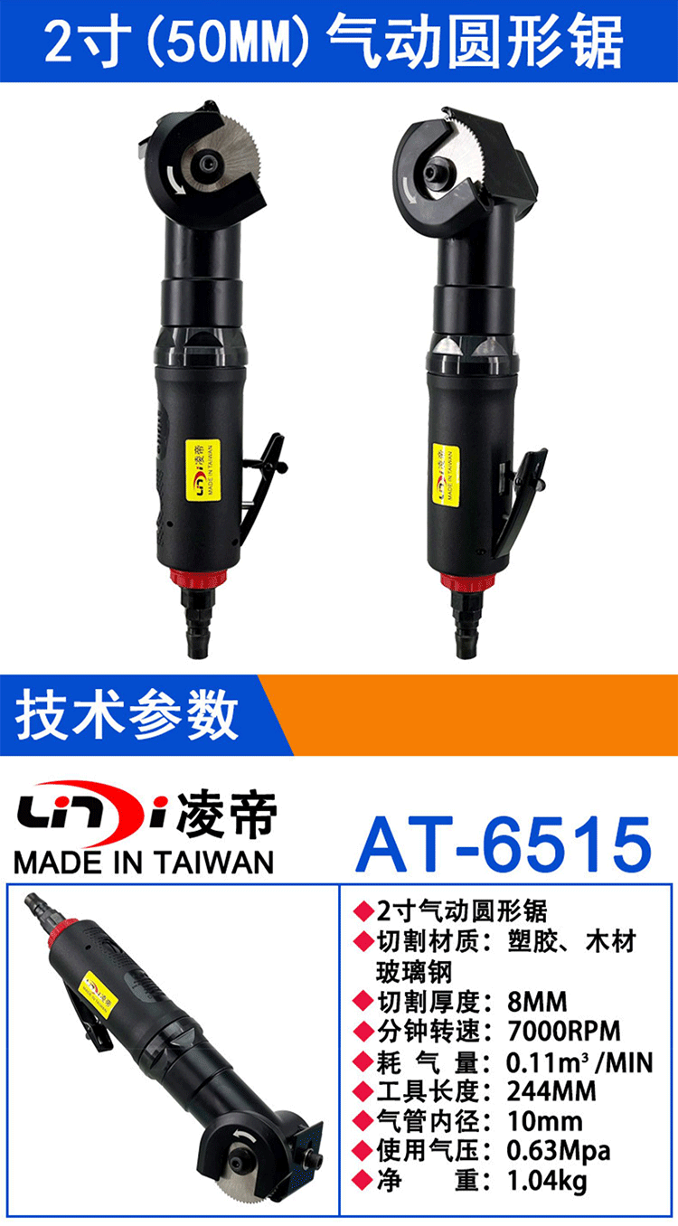 凌帝AT-6515气动切割机铝铜铁板切割2寸圆形锯高速钢切片气动工具 AT-6515