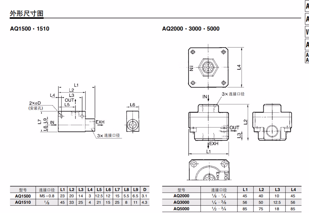 > SMC快速排气阀泄气阀 AQ2000-02-01 AQ3000-02-03 AQ5000-04-06 AQ3000-F02