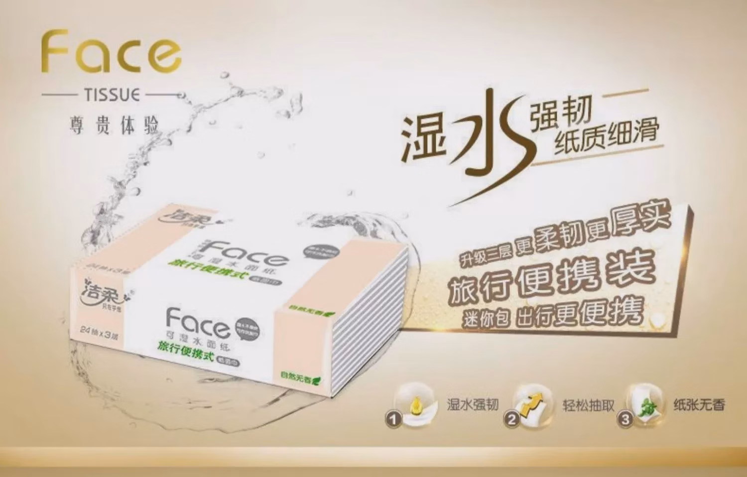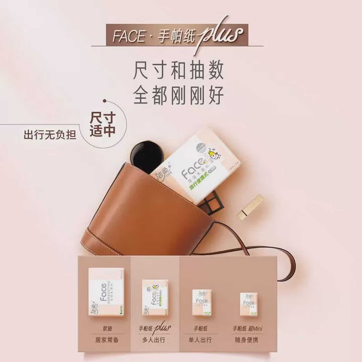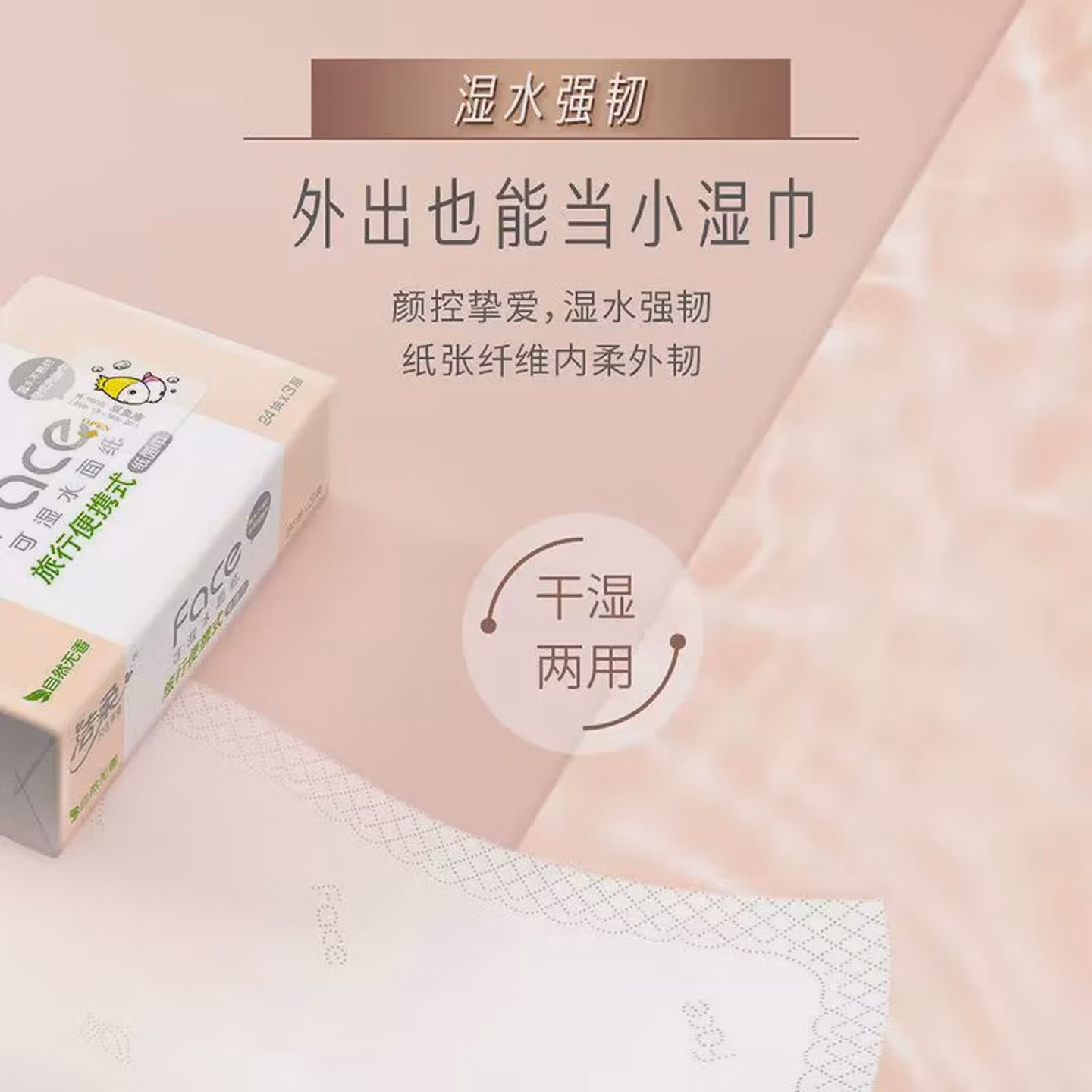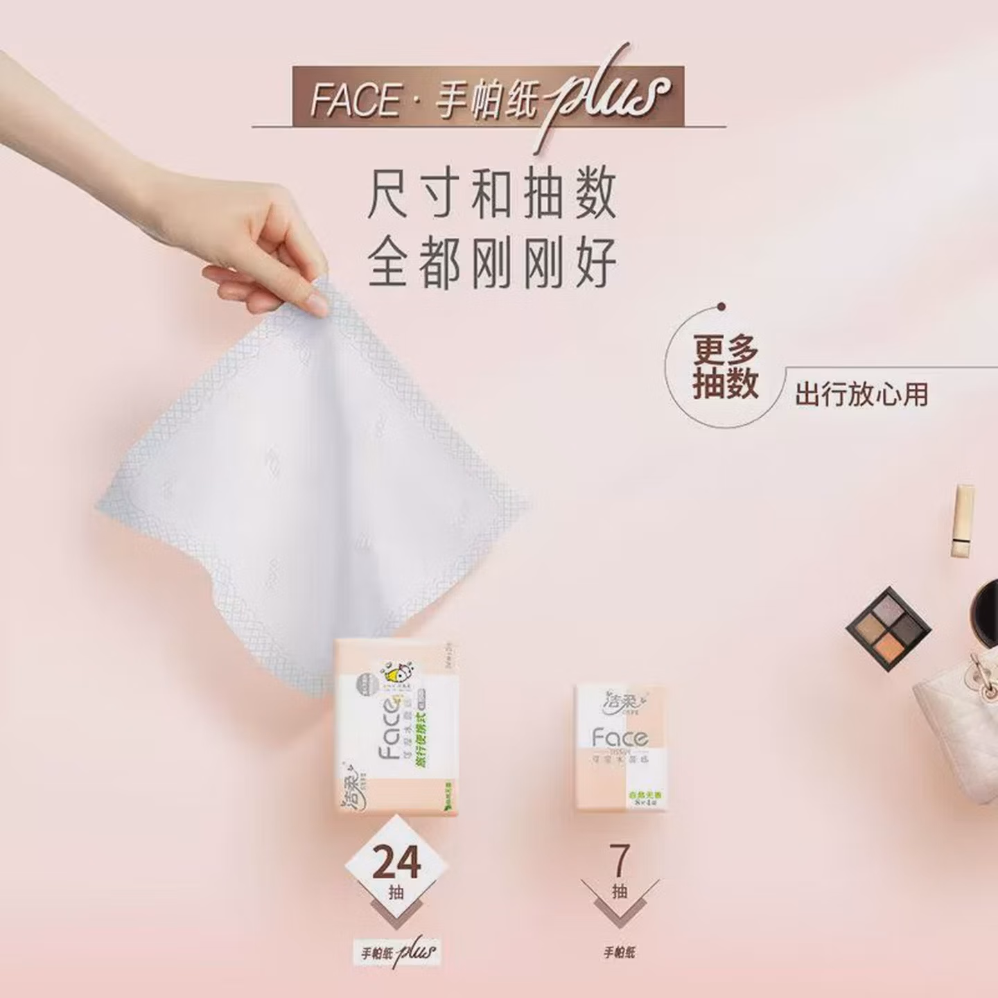 > 洁柔粉Face手帕纸3层可湿水面巾抽纸旅行便携经济装整 1层 1片*1包 203*200mm3层24抽10包*2提