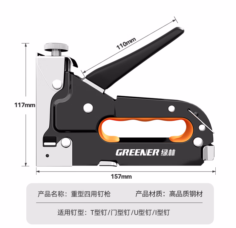 绿林(GREENER)码钉枪射钉手动打钉枪气钉子木工专用直订书马丁神器家用u型t 升级强力四用枪(送800钉)+送1000枚门型钉