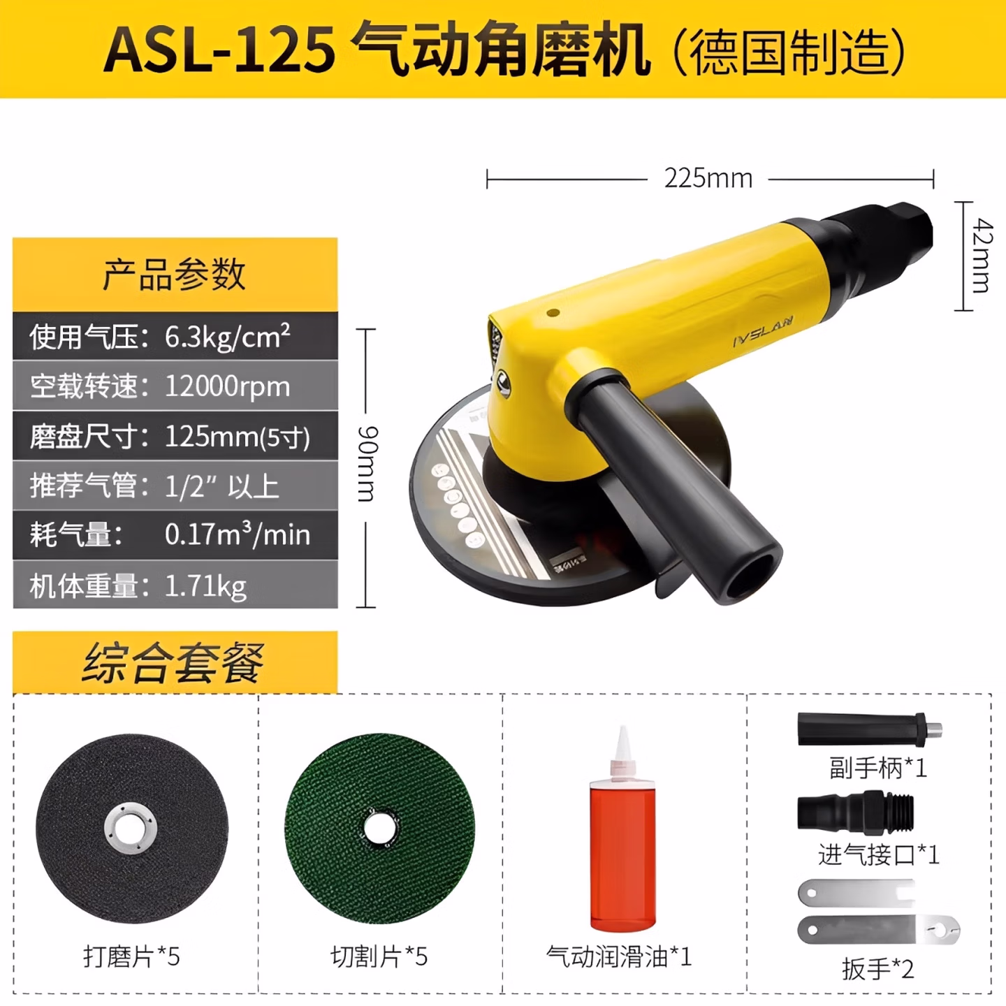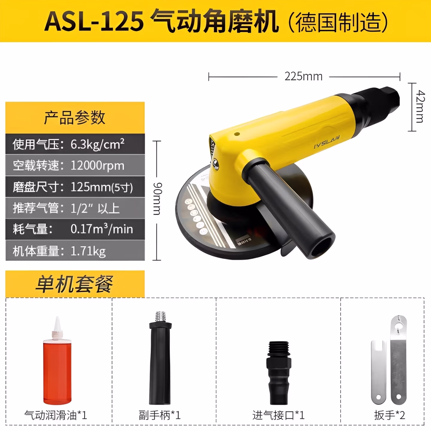 > IVSLAN德国阿斯兰4寸气动角磨机风动磨光机抛光除锈机砂轮机角向打磨机 6寸气动角磨机ASL-150