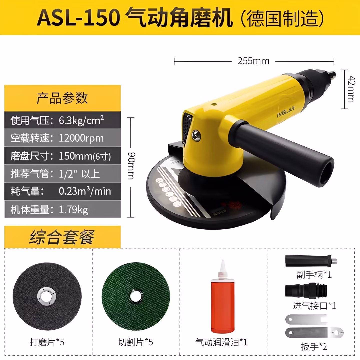 IVSLAN德国阿斯兰4寸气动角磨机风动磨光机抛光除锈机砂轮机角向打磨机 6寸气动角磨机ASL-150
