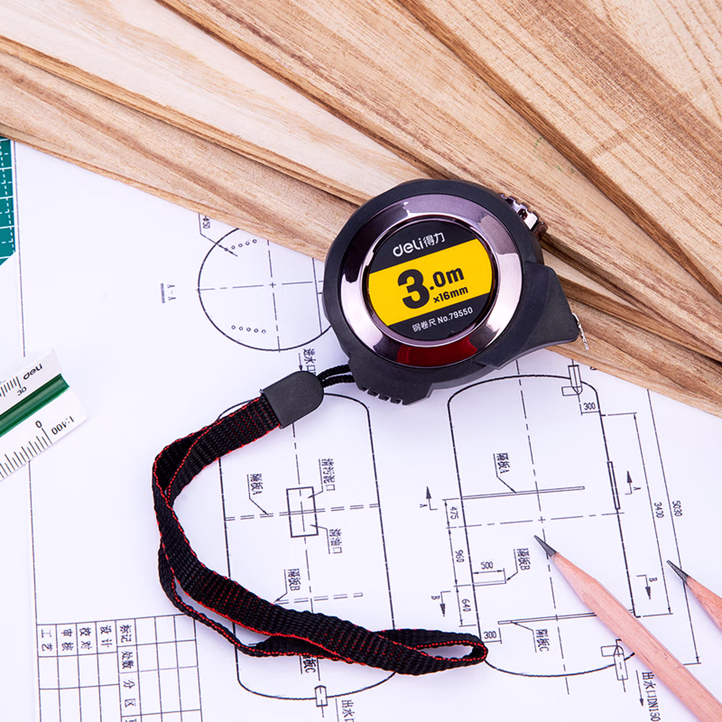 > 得力(deli)3m全包胶自锁钢卷尺 Ⅱ级精度测量尺子 79550 灰色