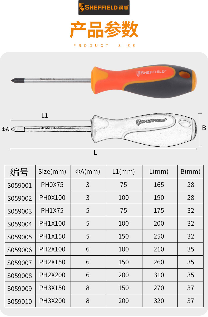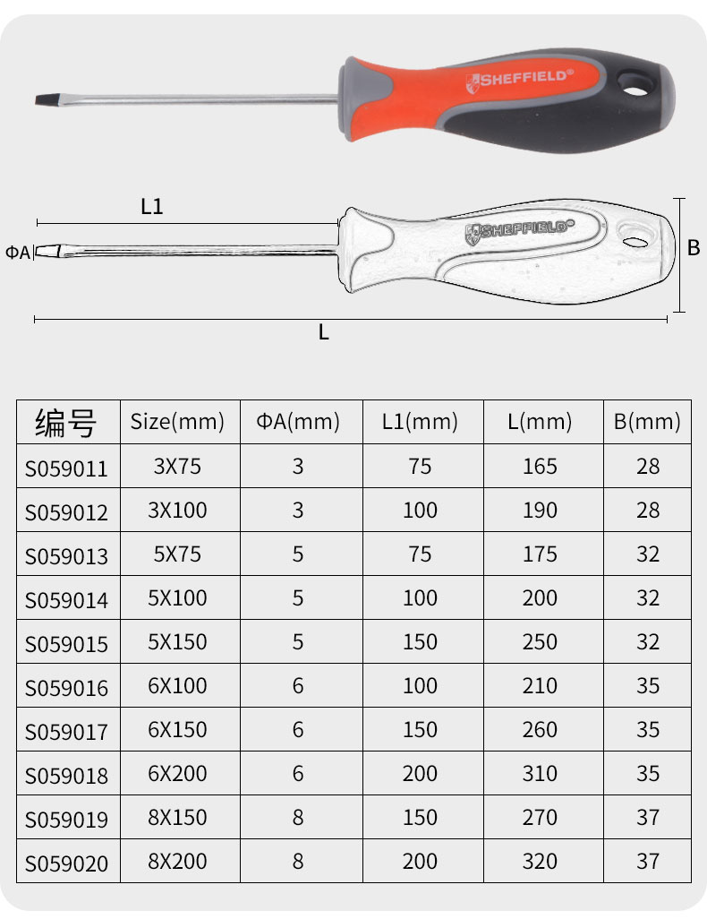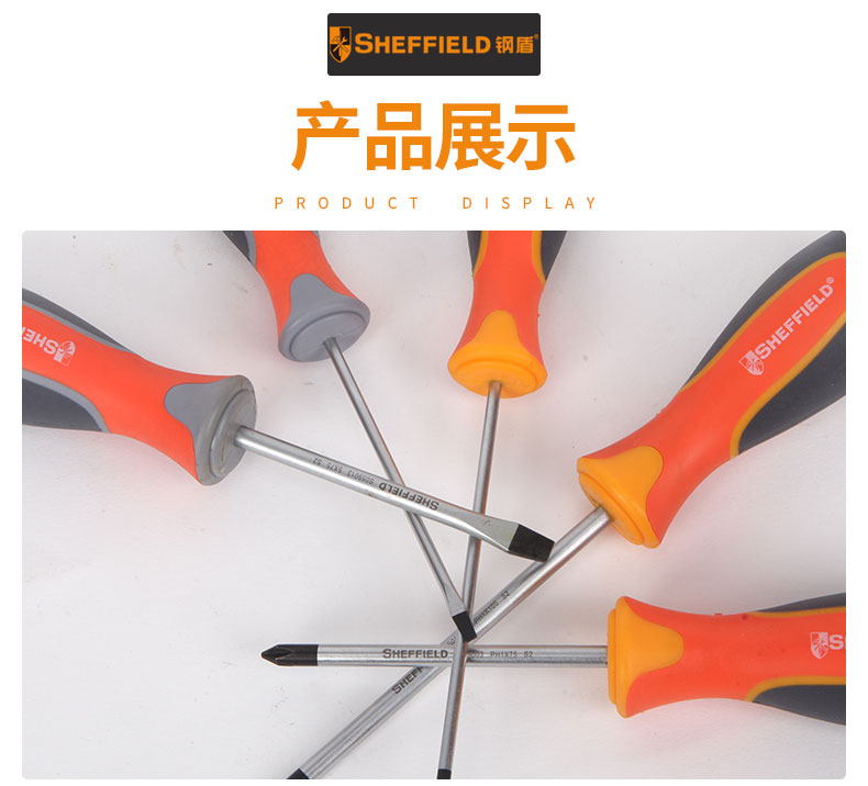 > 钢盾 SHEFFIELD S059011 三色柄一字螺丝刀3x75mm 强磁性螺丝刀 套装螺丝批 改锥 起子
