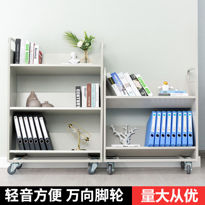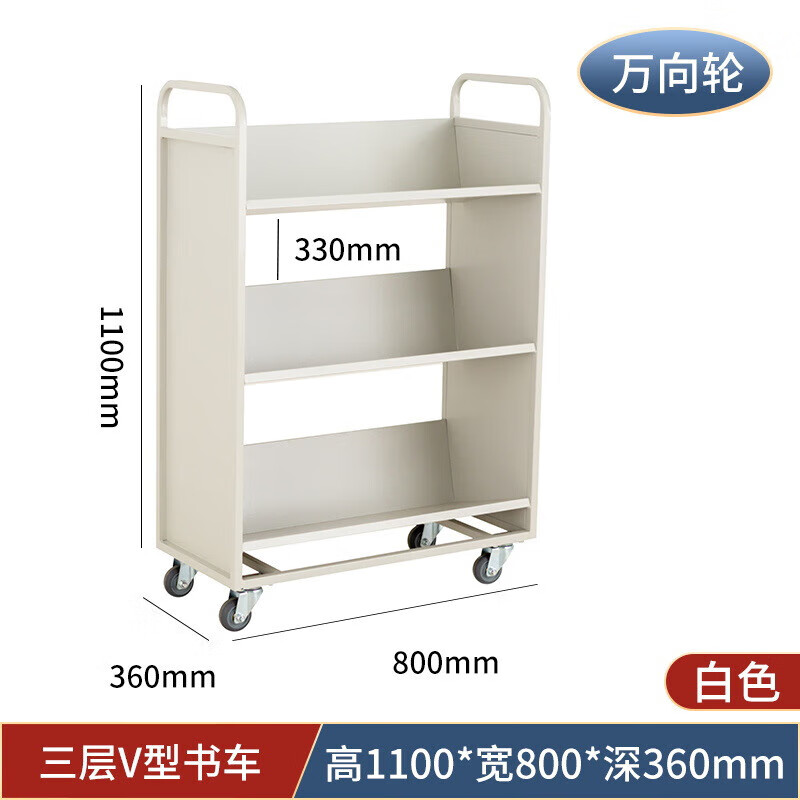 > 斯铂格 三层V型书车 白色款带万向轮图书馆轻音书车档案室专用移动小推车登高梯多功能工具车 BGC-106