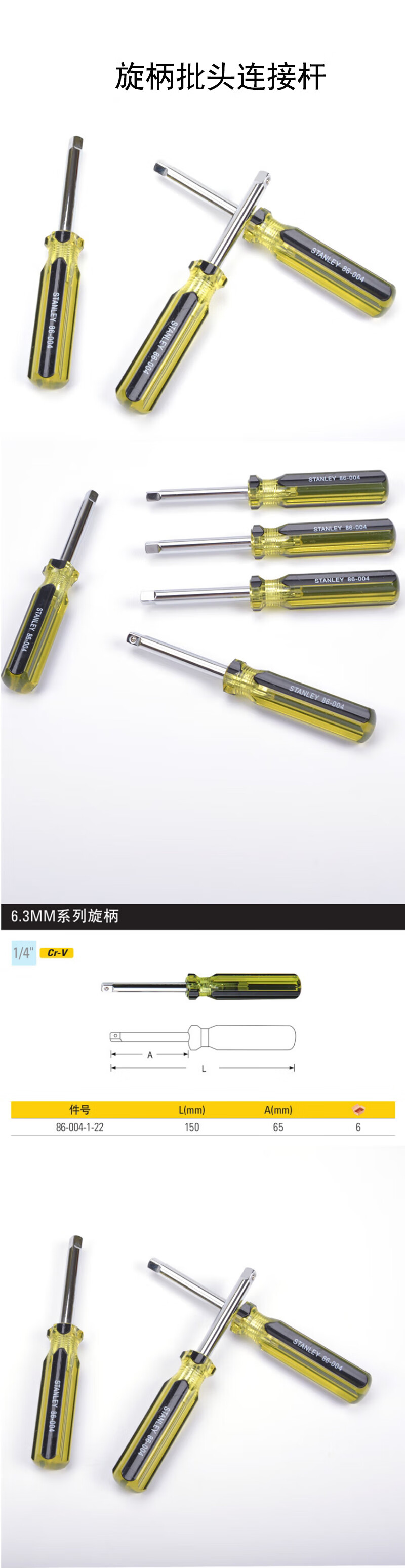 > 史丹利(STANLEY)6.3MM系列旋柄批头连接杆小飞旋具头连接手柄86-004