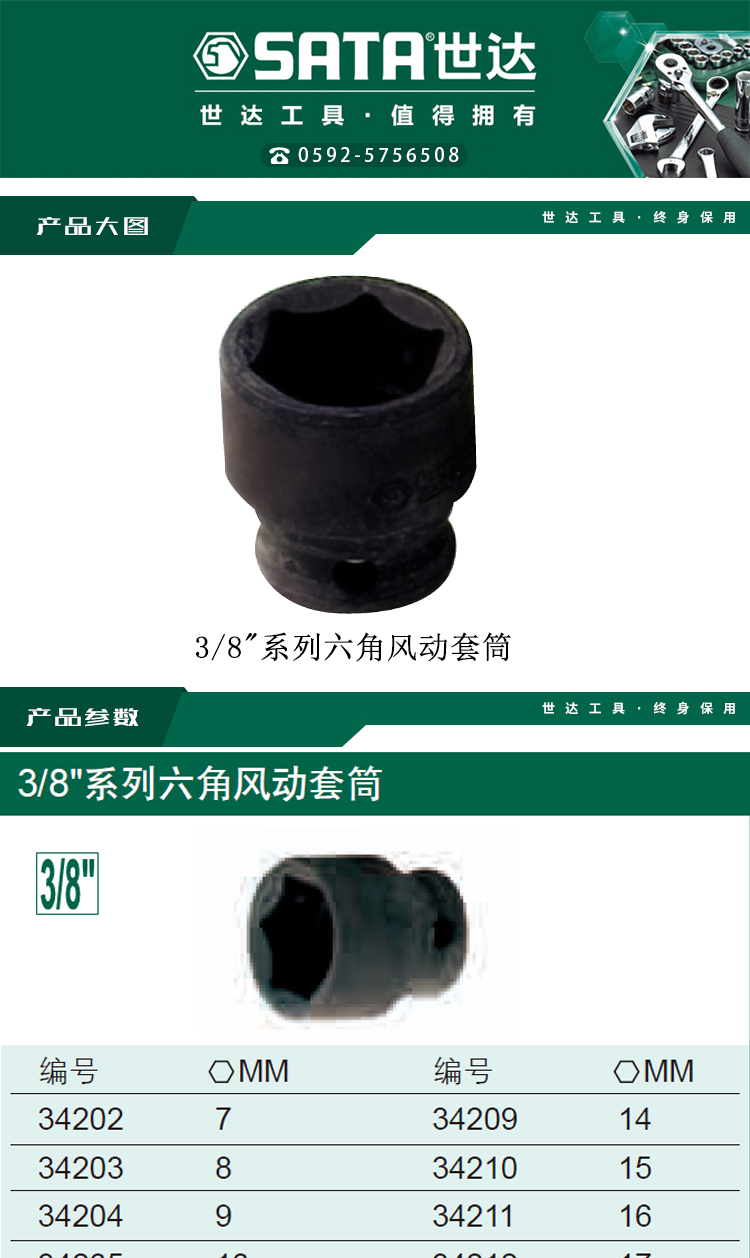 > 世达(SATA) 3/8系列六角风动套筒17MM 34212 现货""
