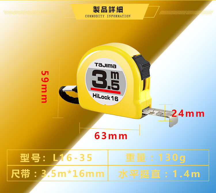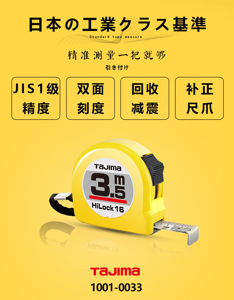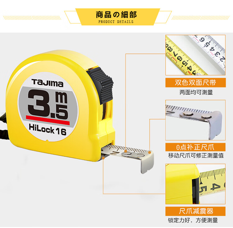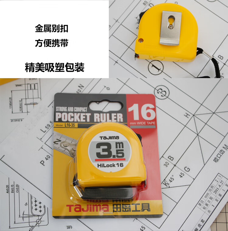 > 田岛(TaJIma)3.5米钢卷尺盒尺米尺木工尺公制16mm宽L1635 1001-0033