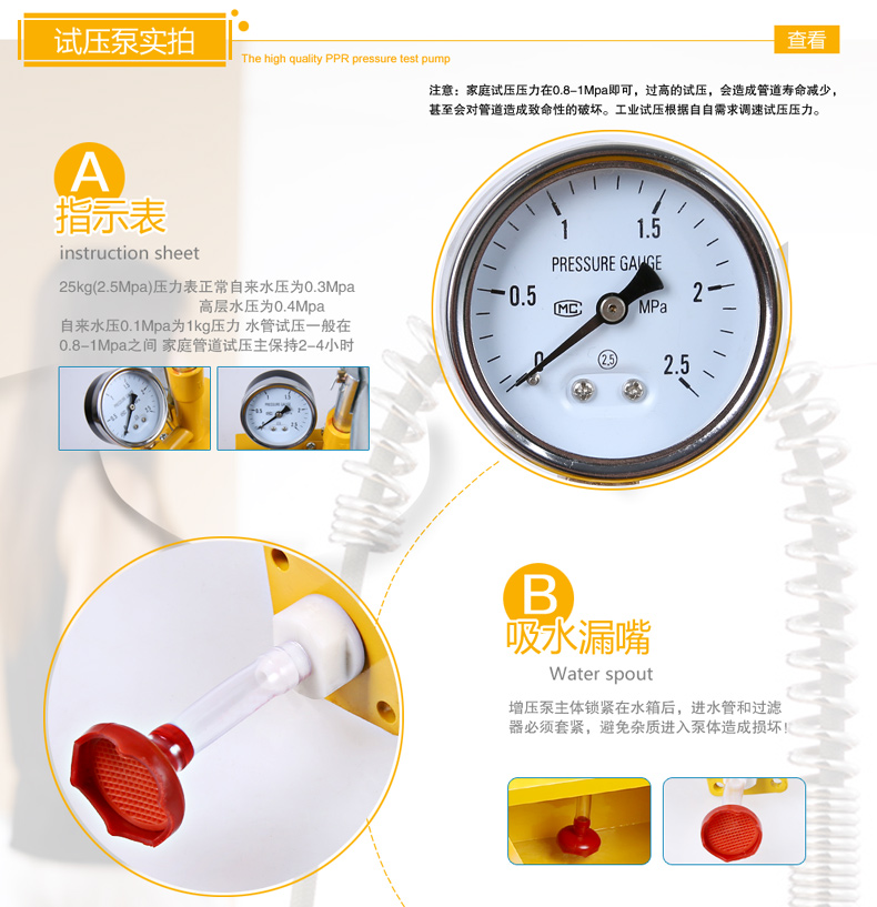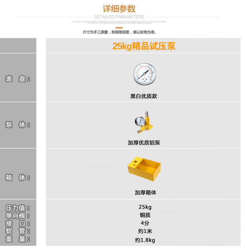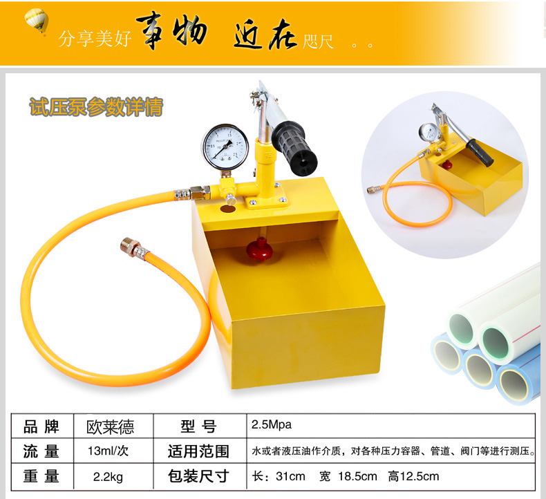 > 欧莱德手动试压泵ppr自来水管道地暖打压机打压泵水管测压手提式压力器 旗舰升级款25kg试压泵送高压管