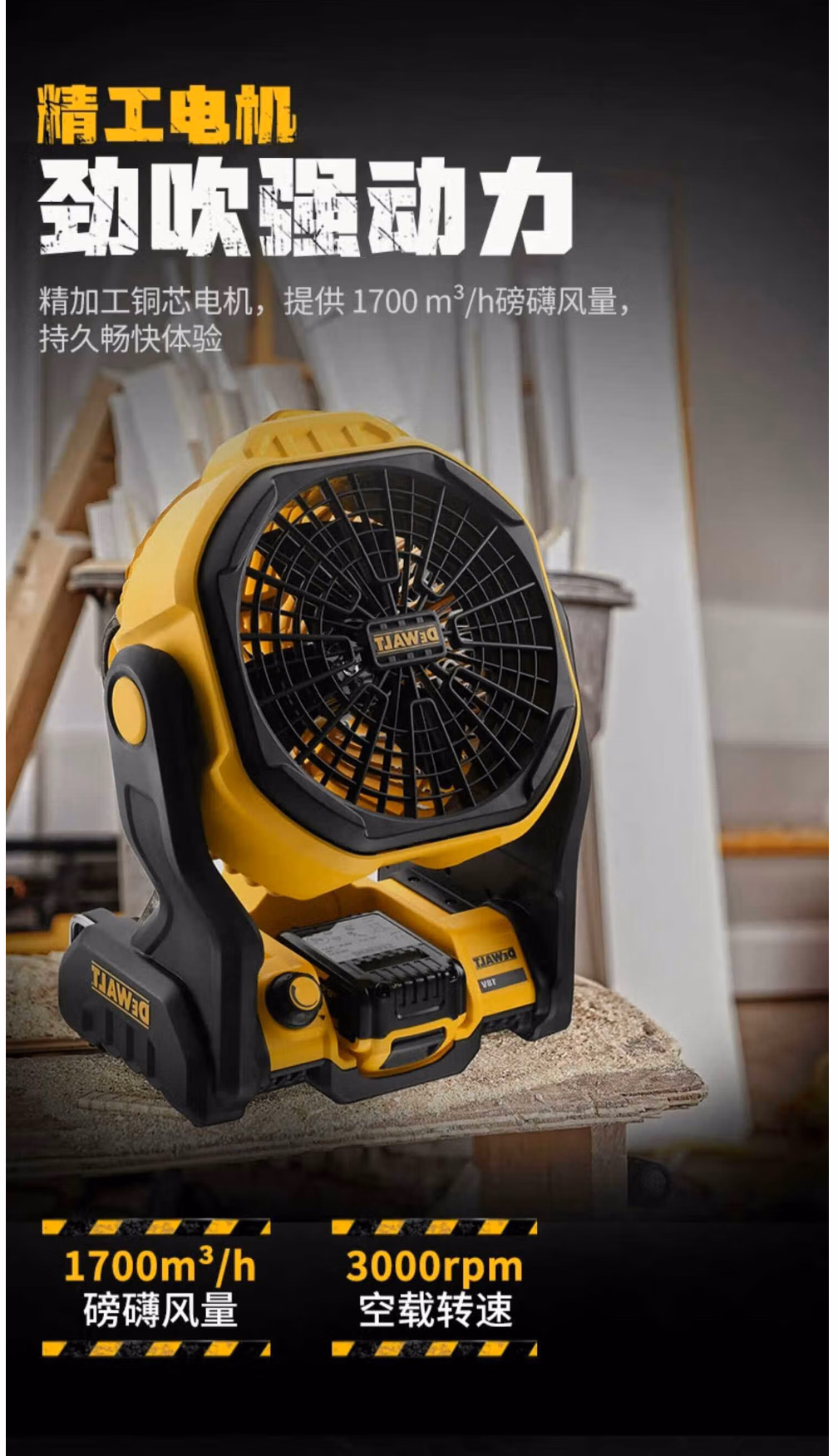 > 得伟 20V锂电工地风扇充电式工地电动吹风机 DCE512N-A9单机纸盒装