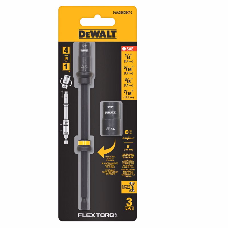 > 得伟公制双头磁性套筒7mm&8mm 10mm&13mm配152mm接杆DWADENDEXT-2MM
