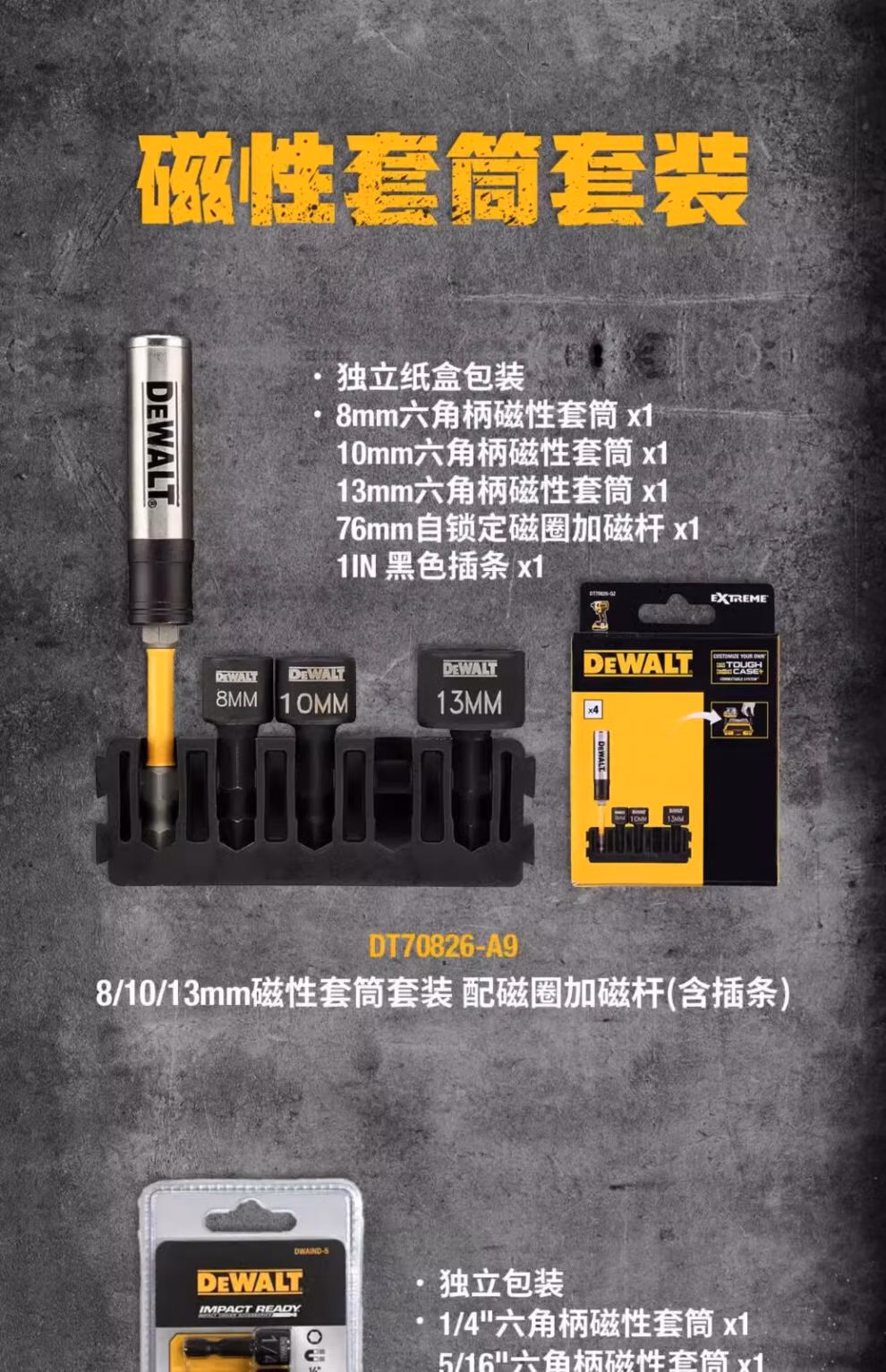 > DWADEND810MM8mm&10mm 公制双头磁性套筒 配接杆