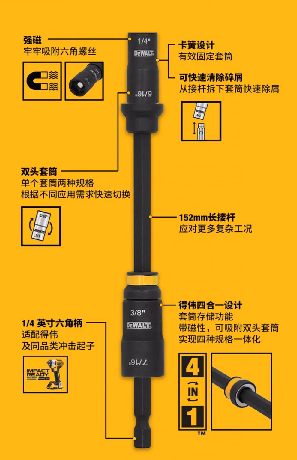 DWADEND810MM8mm&10mm 公制双头磁性套筒 配接杆