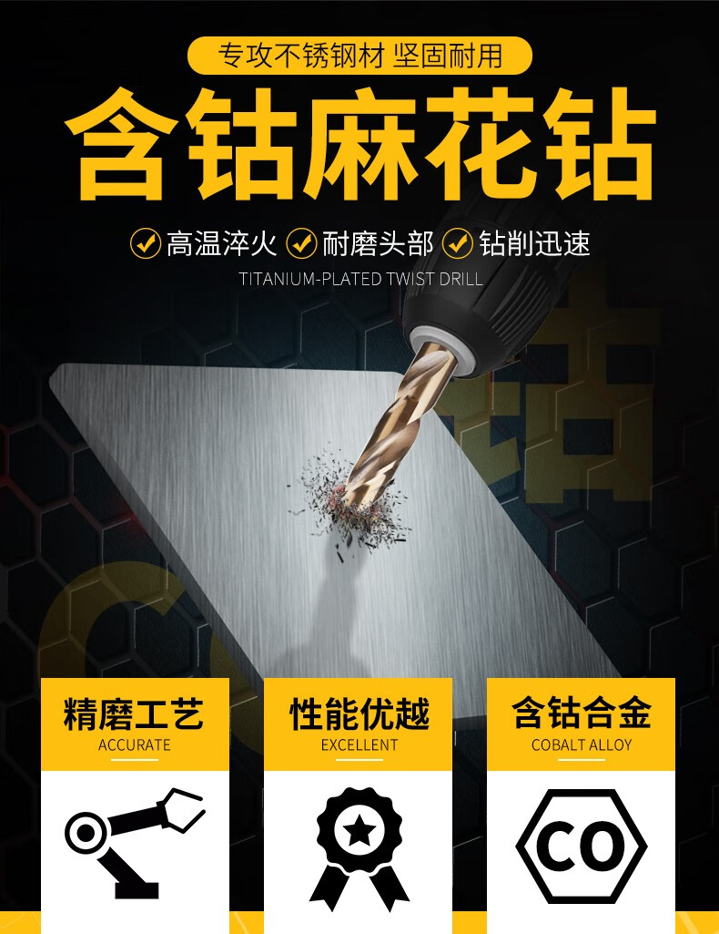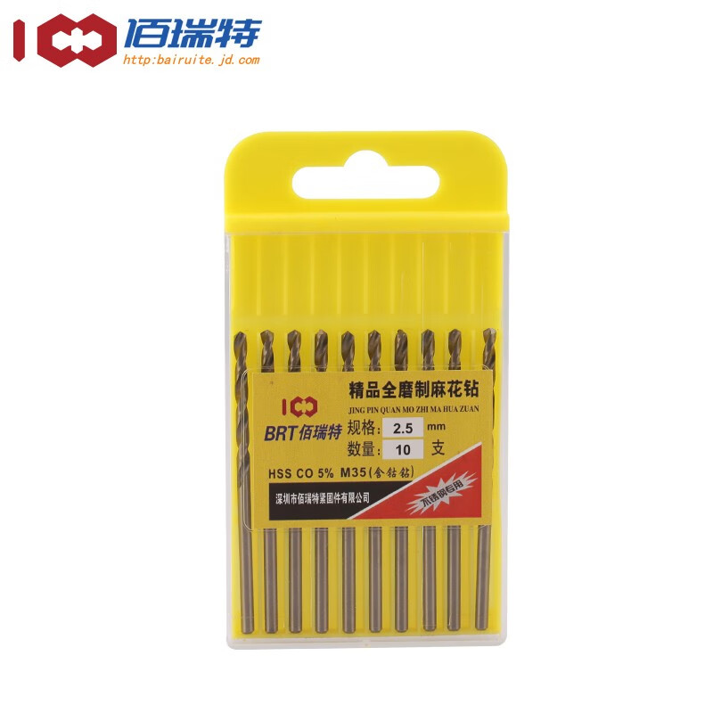 > 佰瑞特不锈钢用含钴麻花钻头钻钢铁金属打孔开孔超硬打铁合金转头1-15mm 2.5mm【5支价】