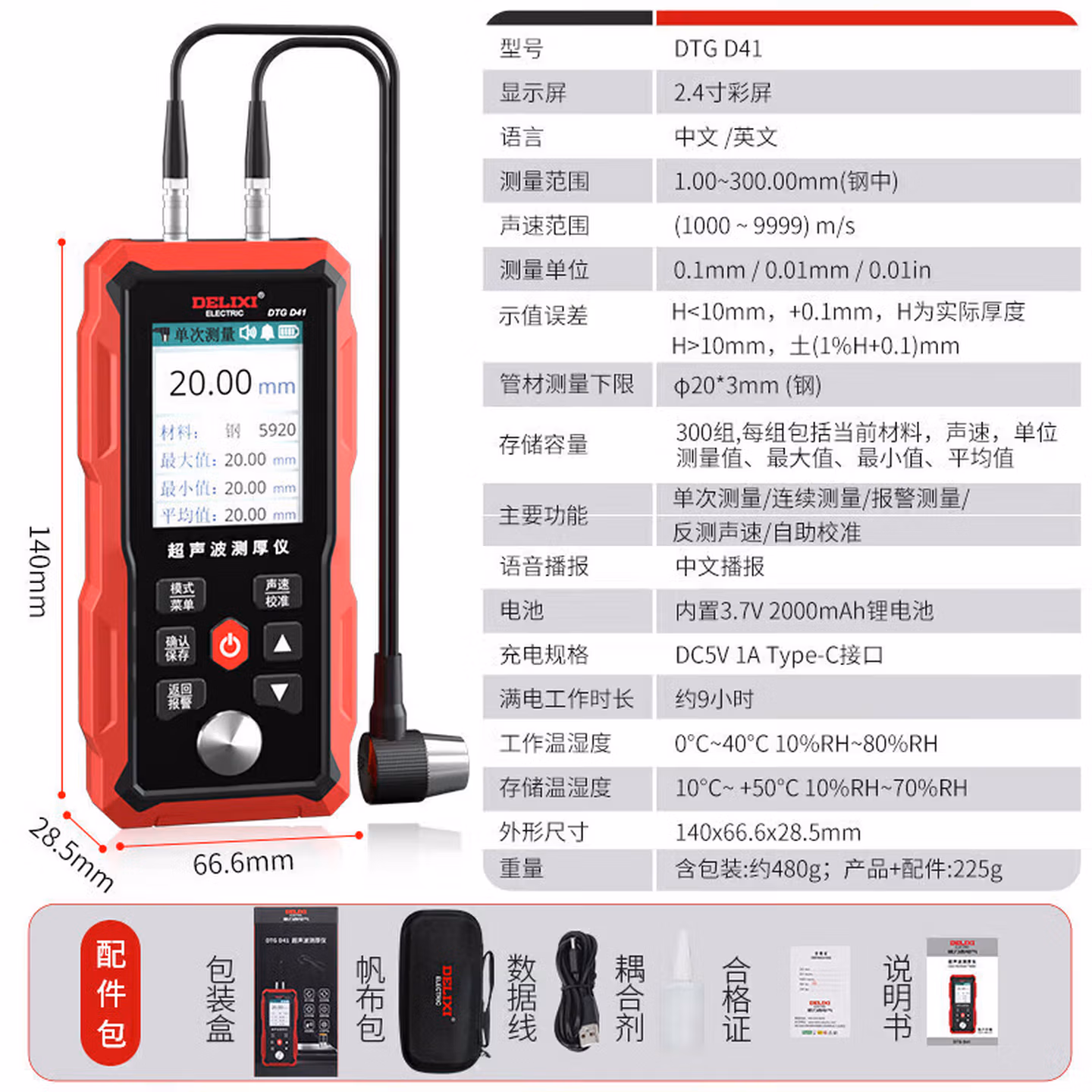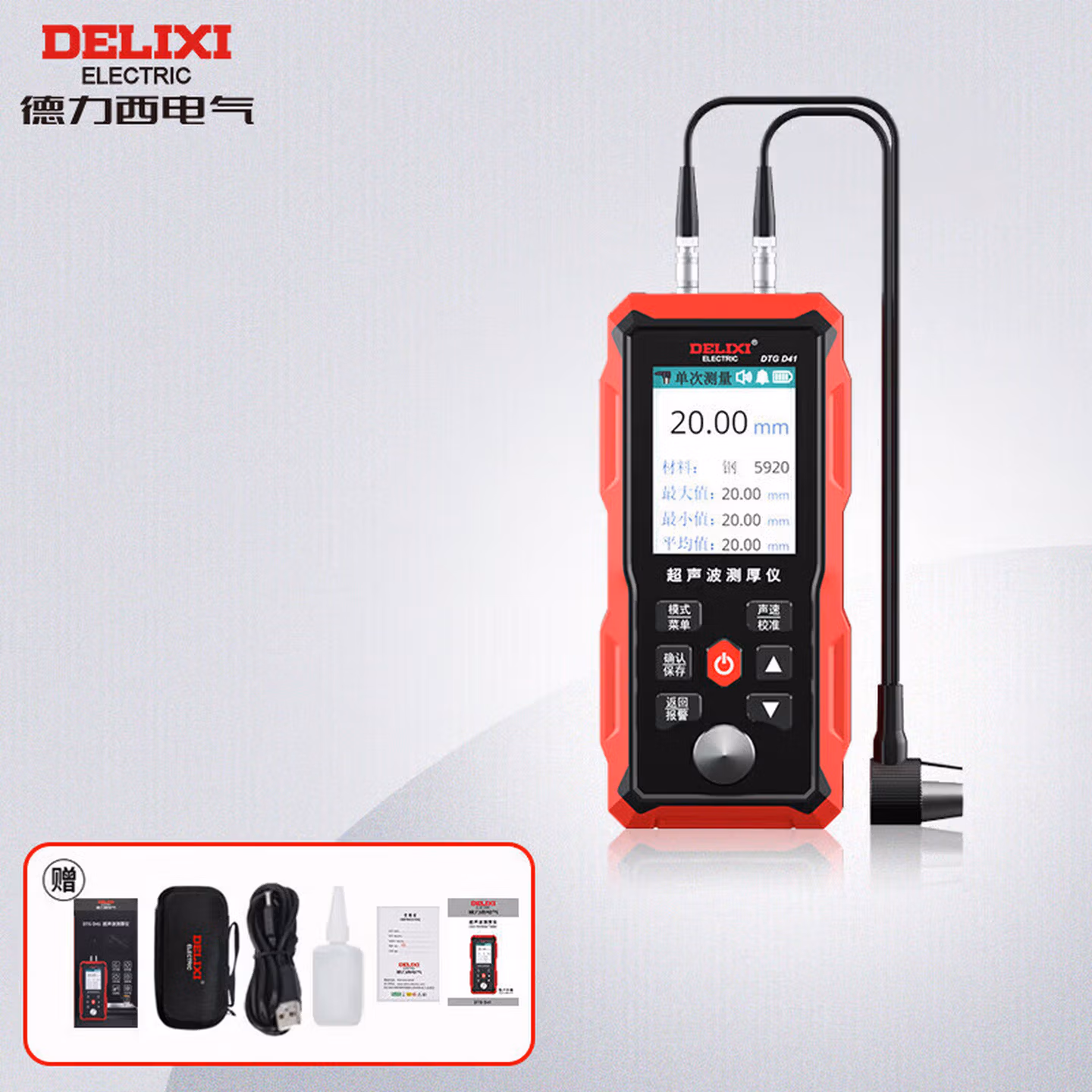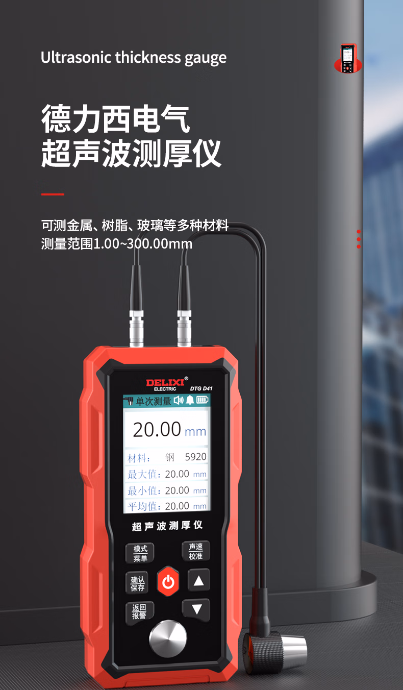 > 德力西电气超声波测厚仪毫米级精度数显彩屏锂电1.00~300.00mm测厚仪 D41