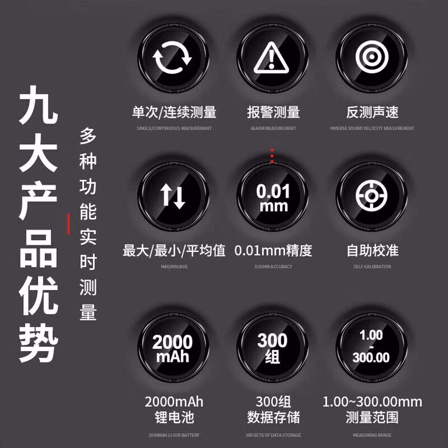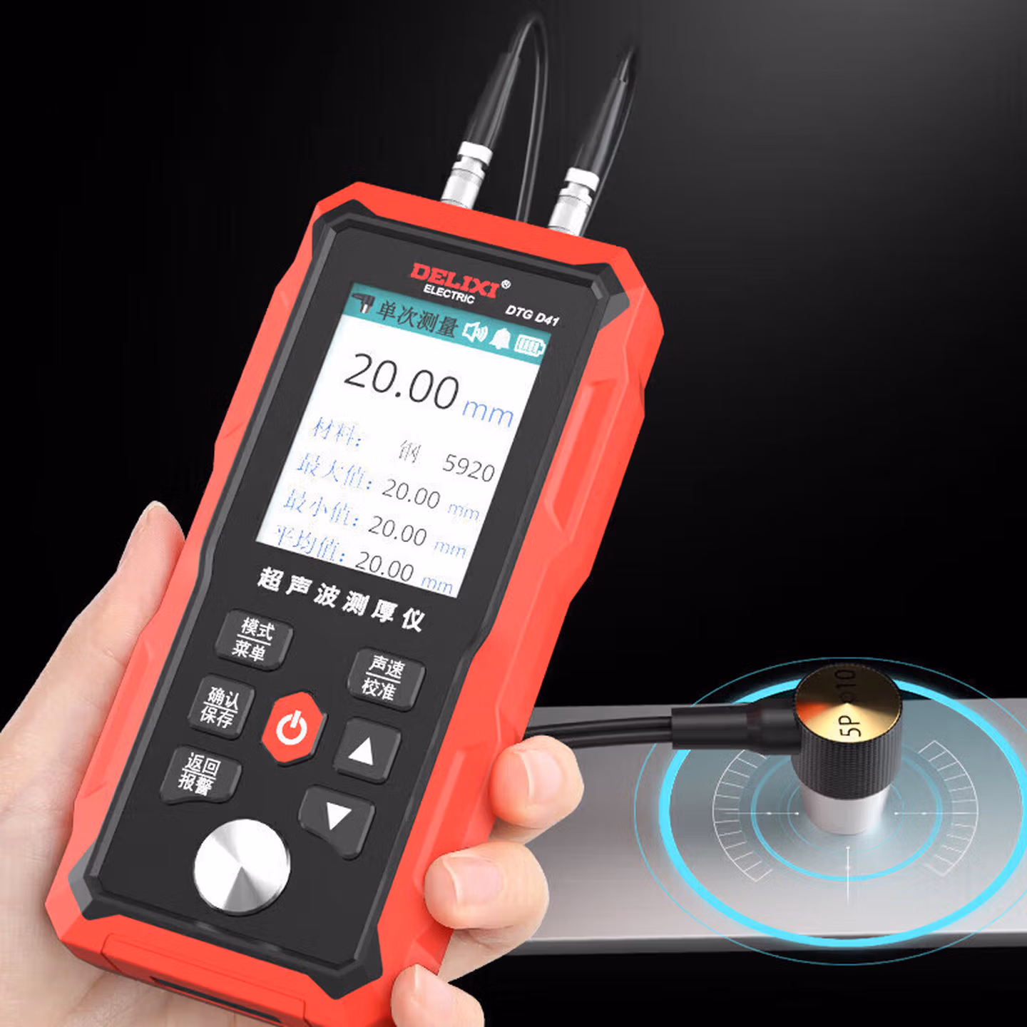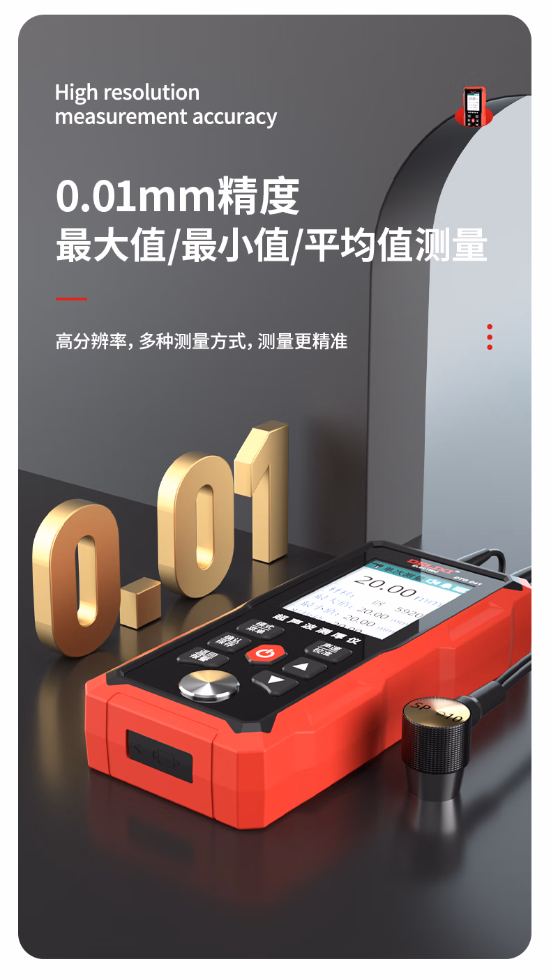 德力西电气超声波测厚仪毫米级精度数显彩屏锂电1.00~300.00mm测厚仪 D41
