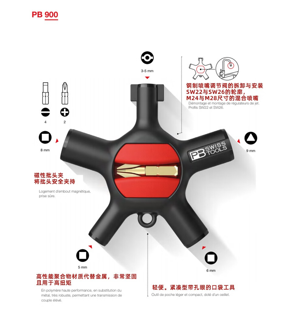 > PB SWISSTOOLS瑞士原装进口螺丝刀开关配电柜十字一字批头多功能钥匙维修工具 9合一