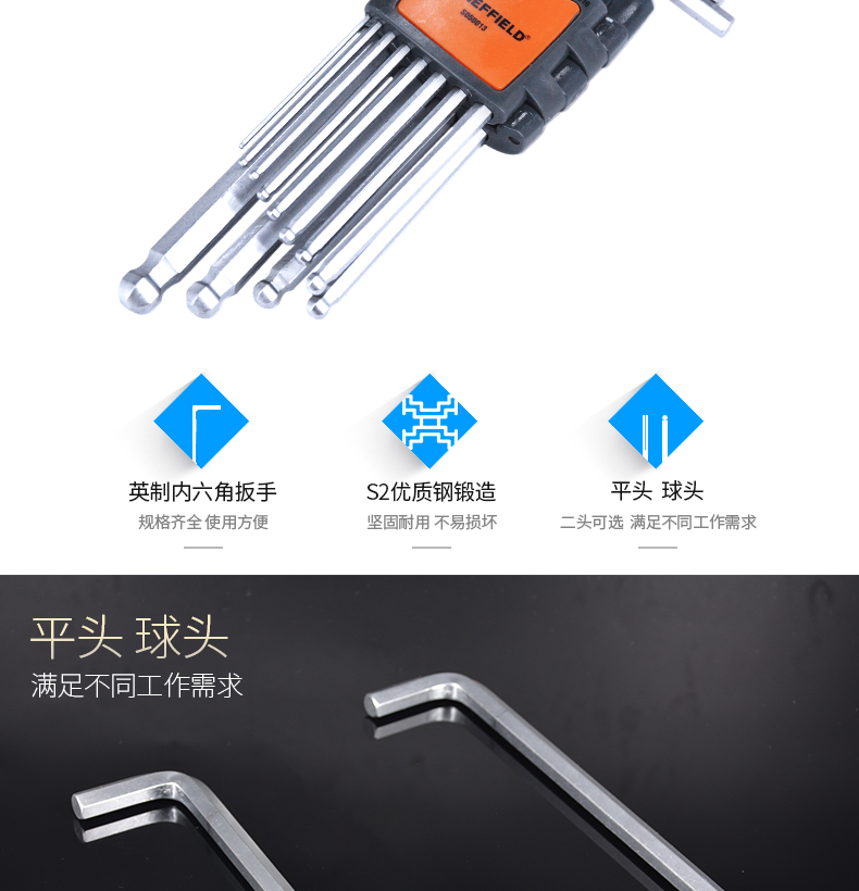 > 钢盾 SHEFFIELD S050013 12件套英制加长内六角扳手