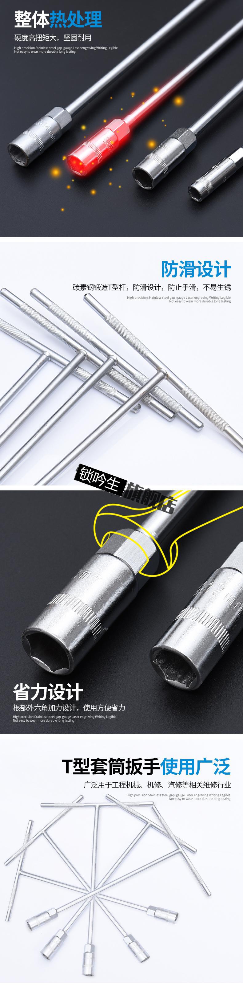 > T型套筒扳手套筒加长 外六角T型扳手多功能 丁字手动套筒扳手套装 T型扳手6MM