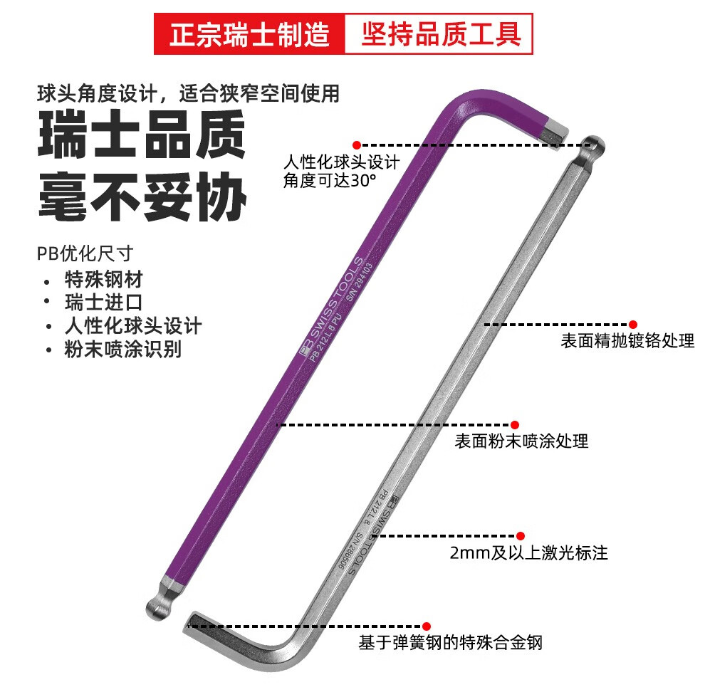 > PB SWISSTOOLS瑞士(PB SWISS TOOLS)内六角扳手单支 球头长 PB 212.L1.5 LG