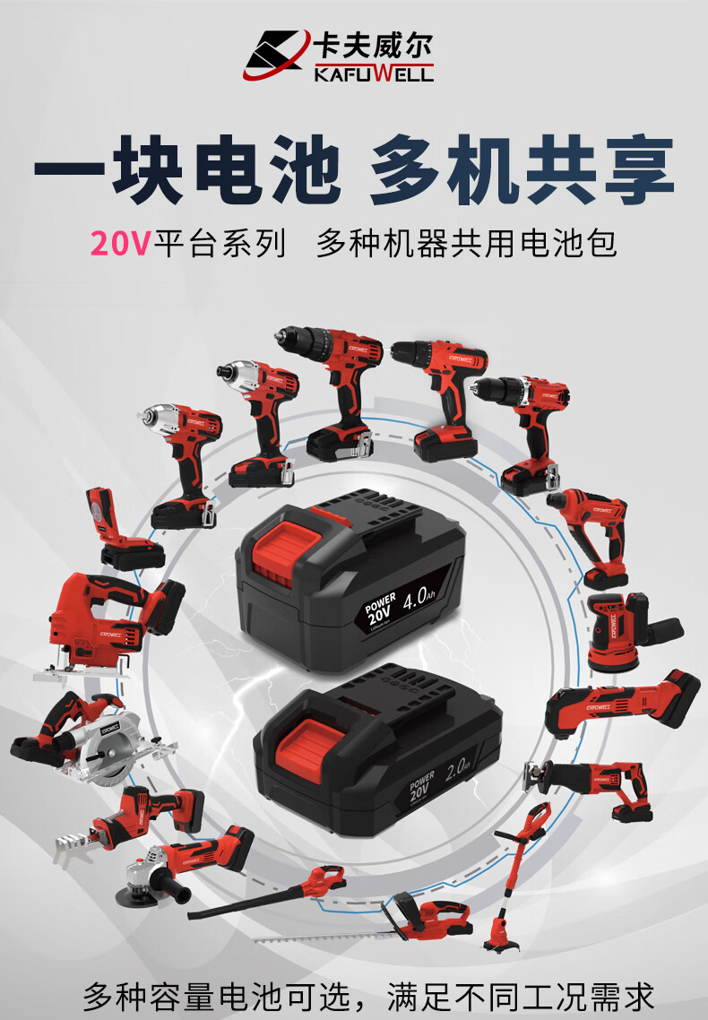 > 卡夫威尔20V锂电气泵 充电打气充气泵高能款 4.0Ah电池 PA4236F-Y-4S-1