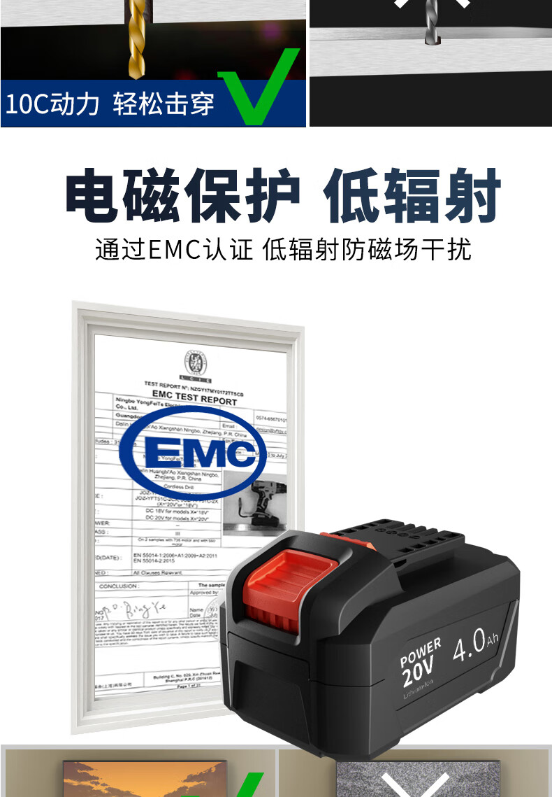 卡夫威尔20V锂电气泵 充电打气充气泵高能款 4.0Ah电池 PA4236F-Y-4S-1