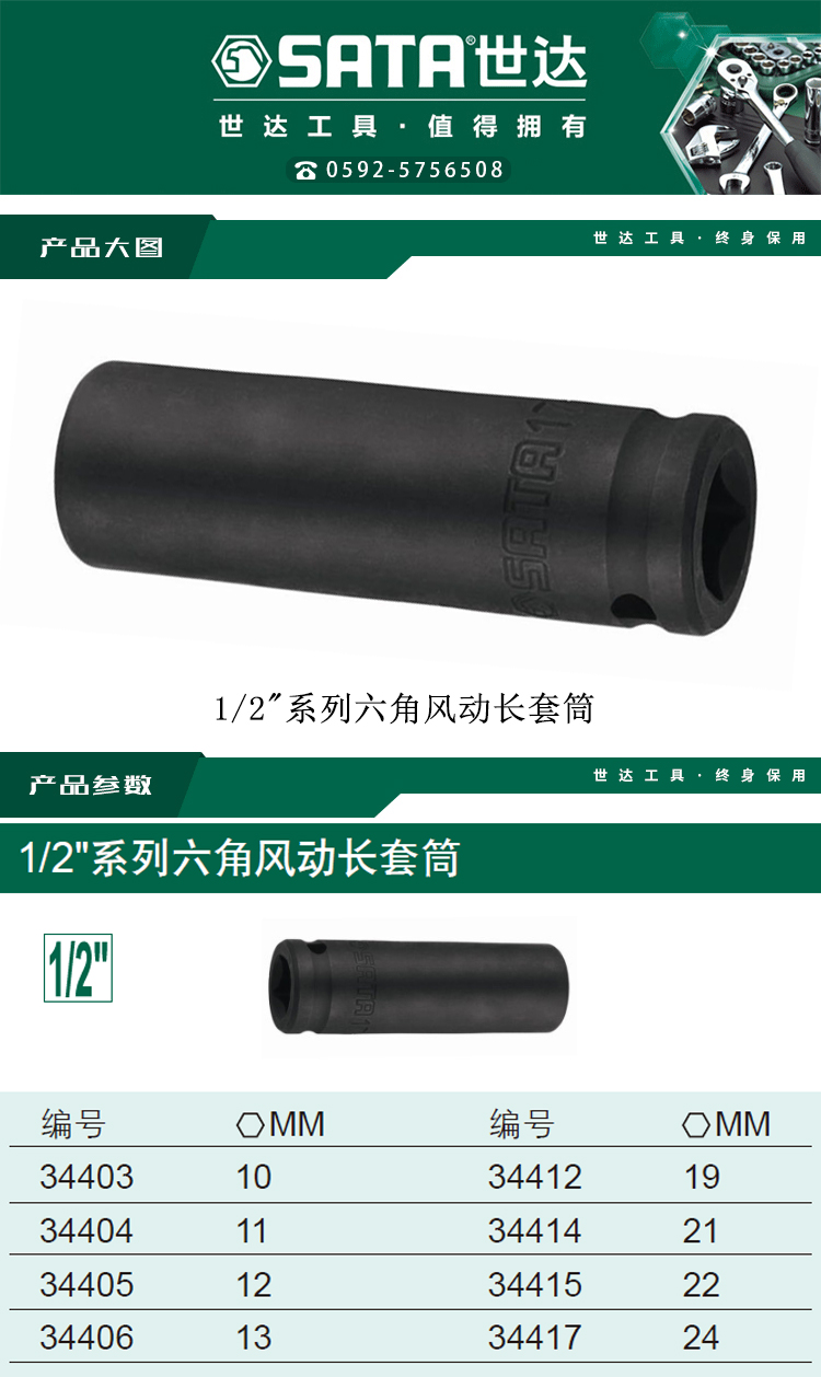 > 世达(SATA) 1/2系列六角风动长套筒15MM 34408 现货""
