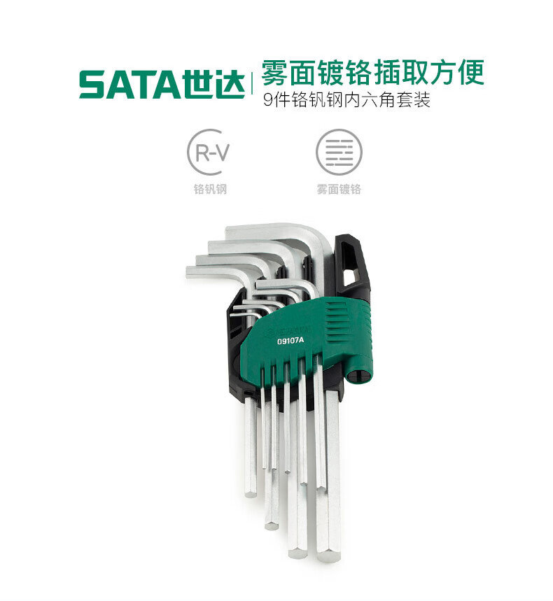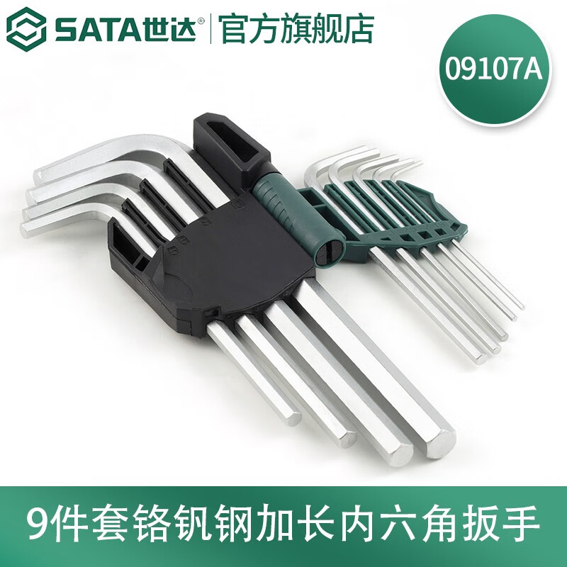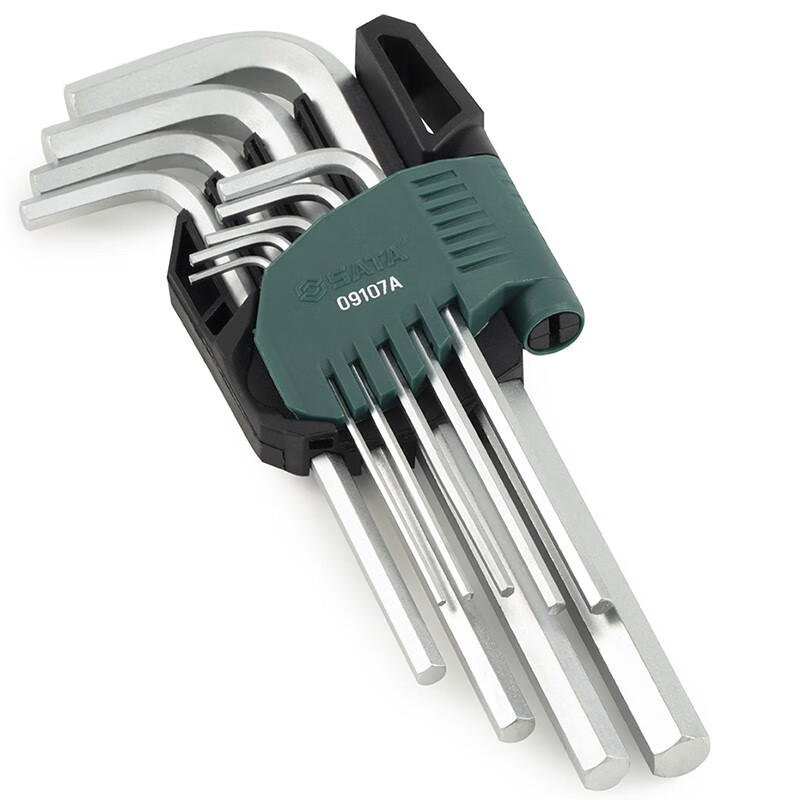 > 世达(SATA)09107A 9件套铬钒钢加长内六角扳手组套 1.5-10MM内六方螺丝批
