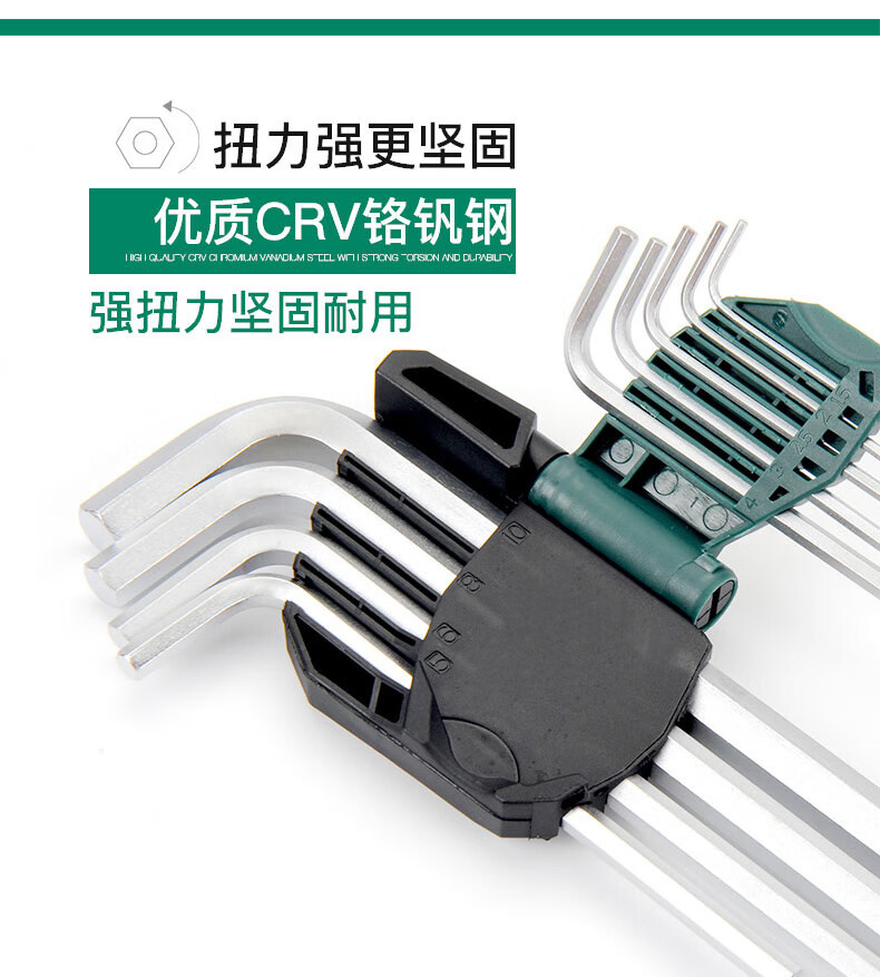 世达(SATA)09107A 9件套铬钒钢加长内六角扳手组套 1.5-10MM内六方螺丝批
