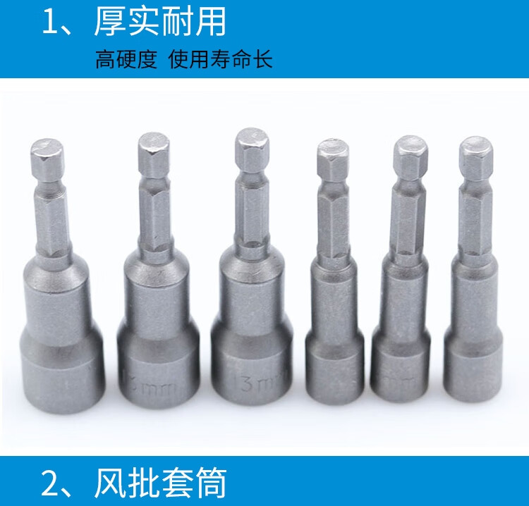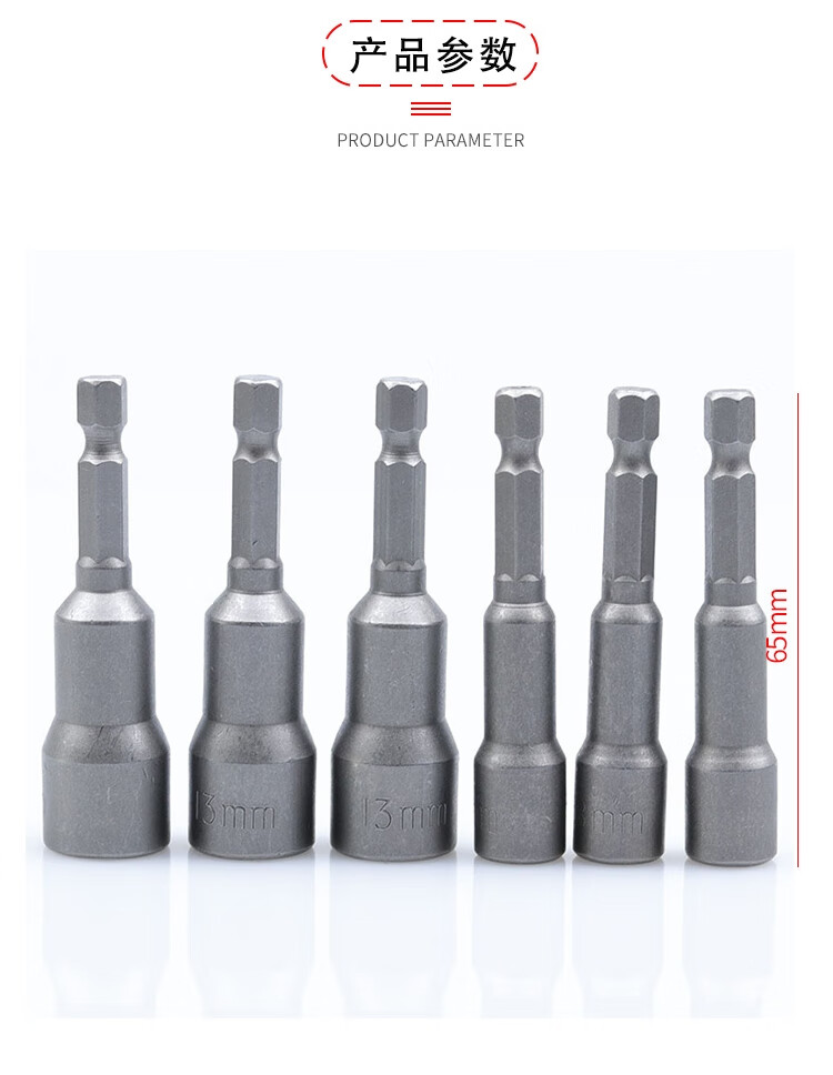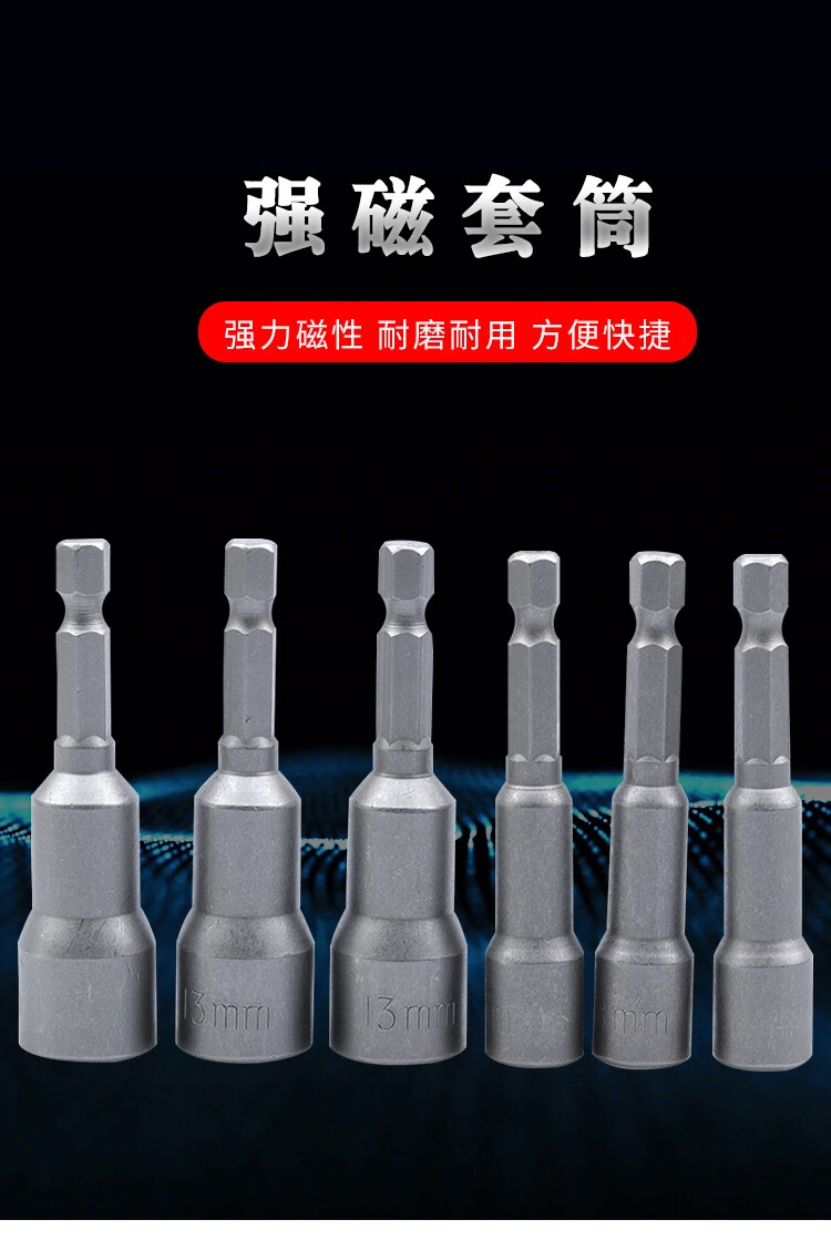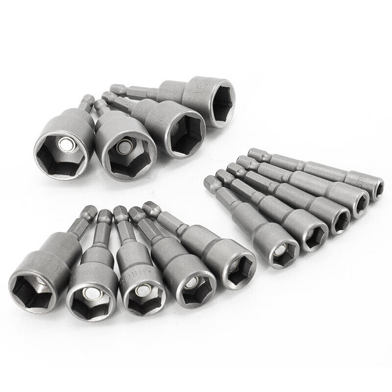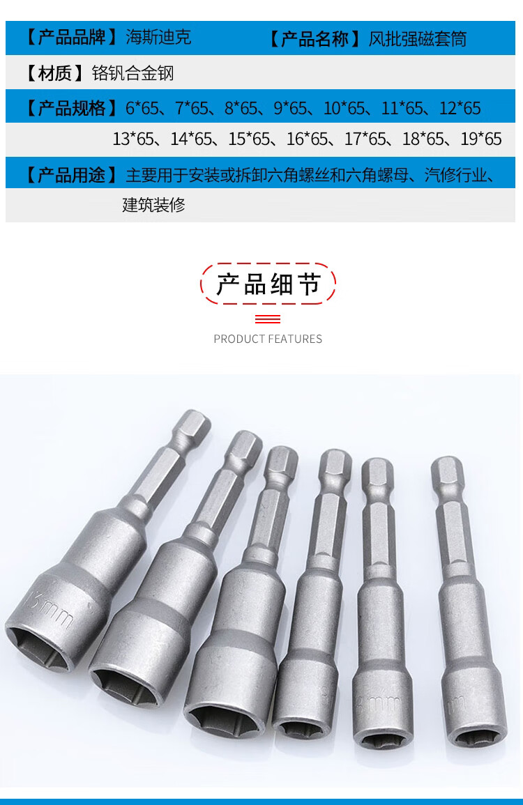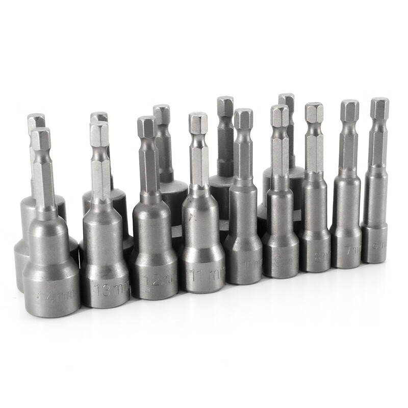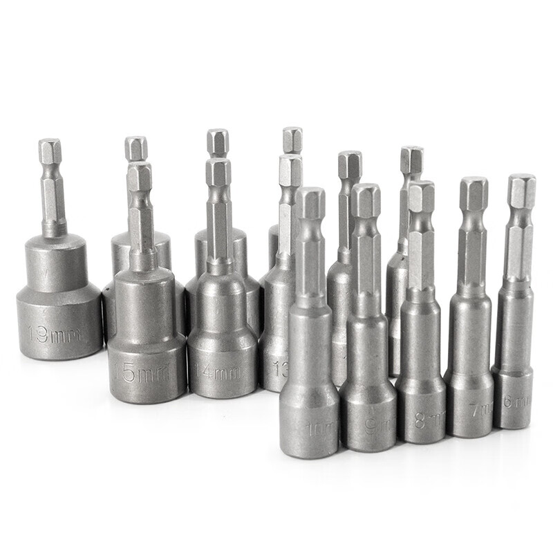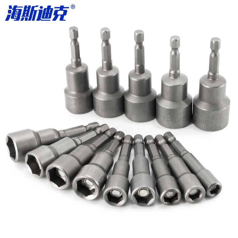 > 海斯迪克 强磁套筒 多规格电动批头 高硬度内六角批头 6*65mm~19*65mm十四件套 HKsq-261