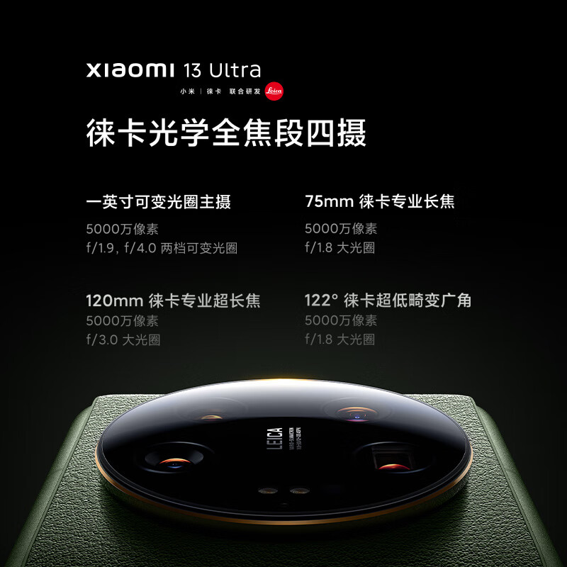 > 小米13Ultra 徕卡光学全焦段四摄 第二代骁龙8处理器 2K超色准屏 IP68防水 16 512GB 黑色 小米手机 5G手机