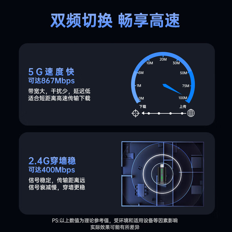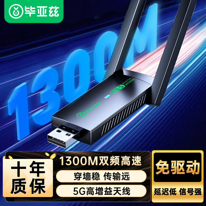 毕亚兹 USB无线网卡免驱版 AC650M双频5G网卡 台式机笔记本电脑无线接收器随身WiFi发射接收器 外置天线