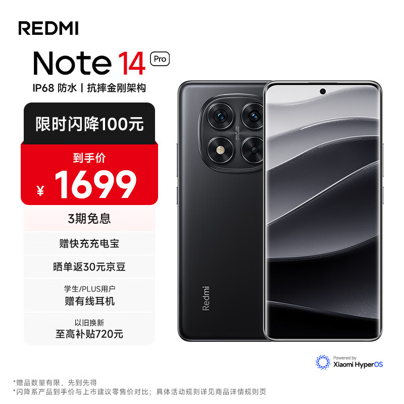 > 小米(MI)Redmi Note 14 Pro 天玑7300-Ultra IP68防尘防水 5500mAh大电量 12GB+256GB 镜瓷白 红米 5G手机