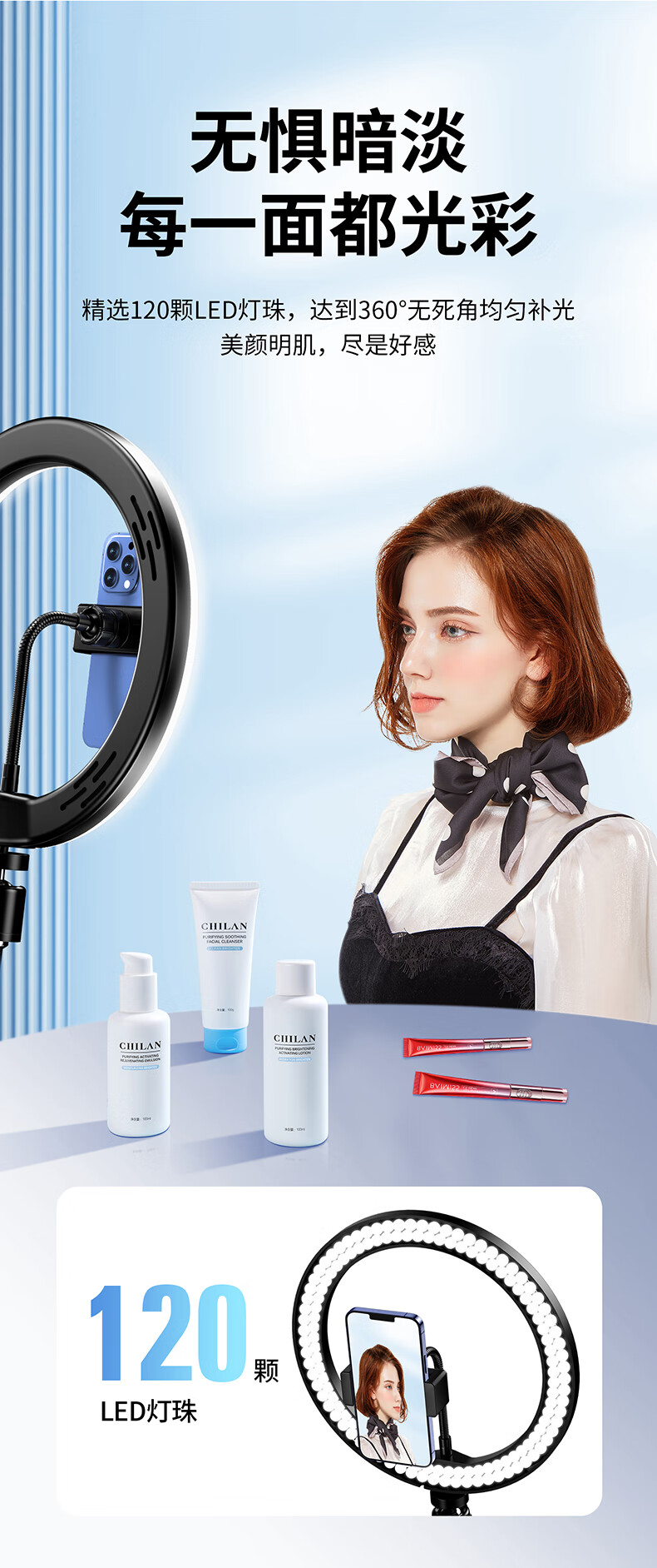 毕亚兹 【2.1米+美颜补光灯】手机直播支架直播三脚架落地便携升降伸缩自拍网红抖音短视频直播录像拍摄B56