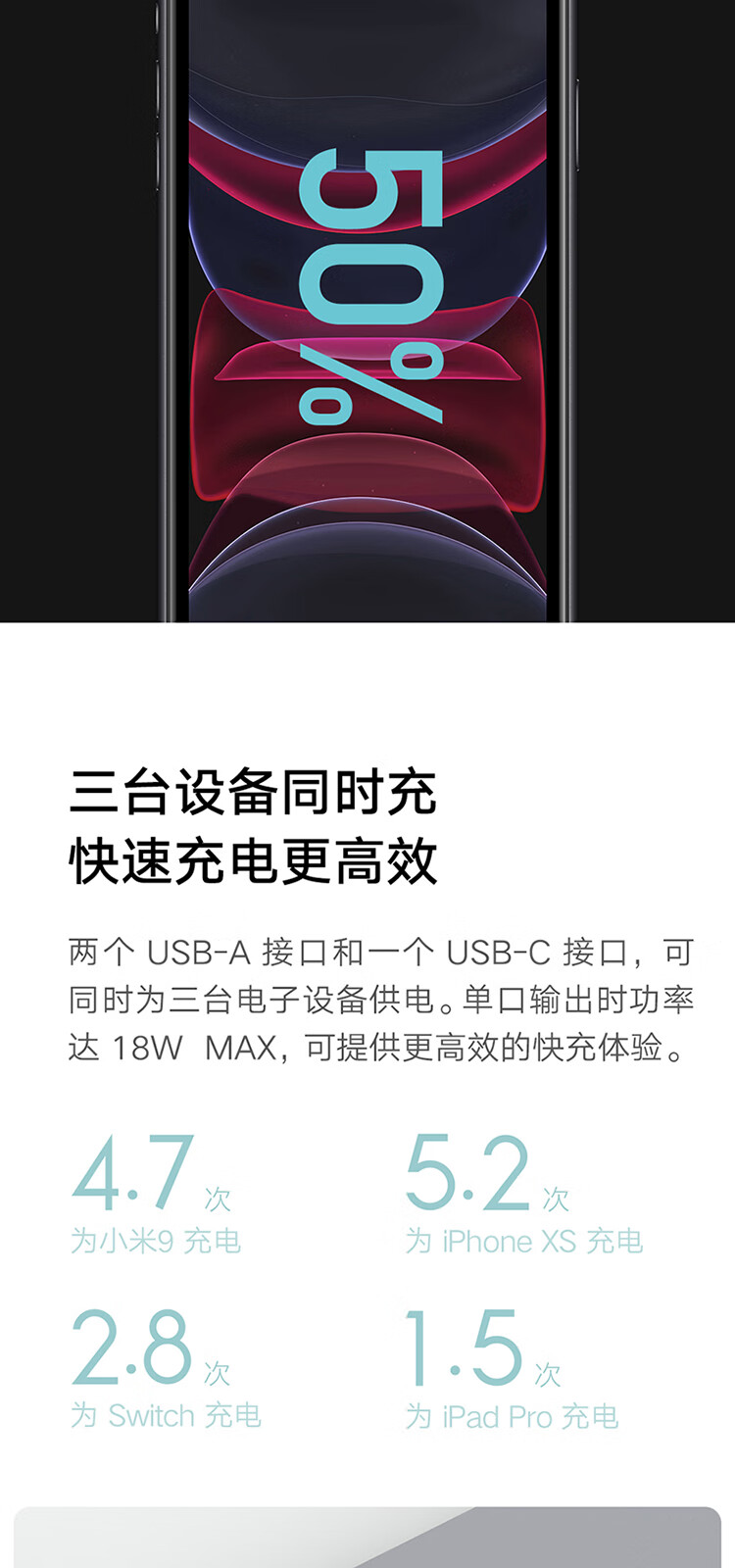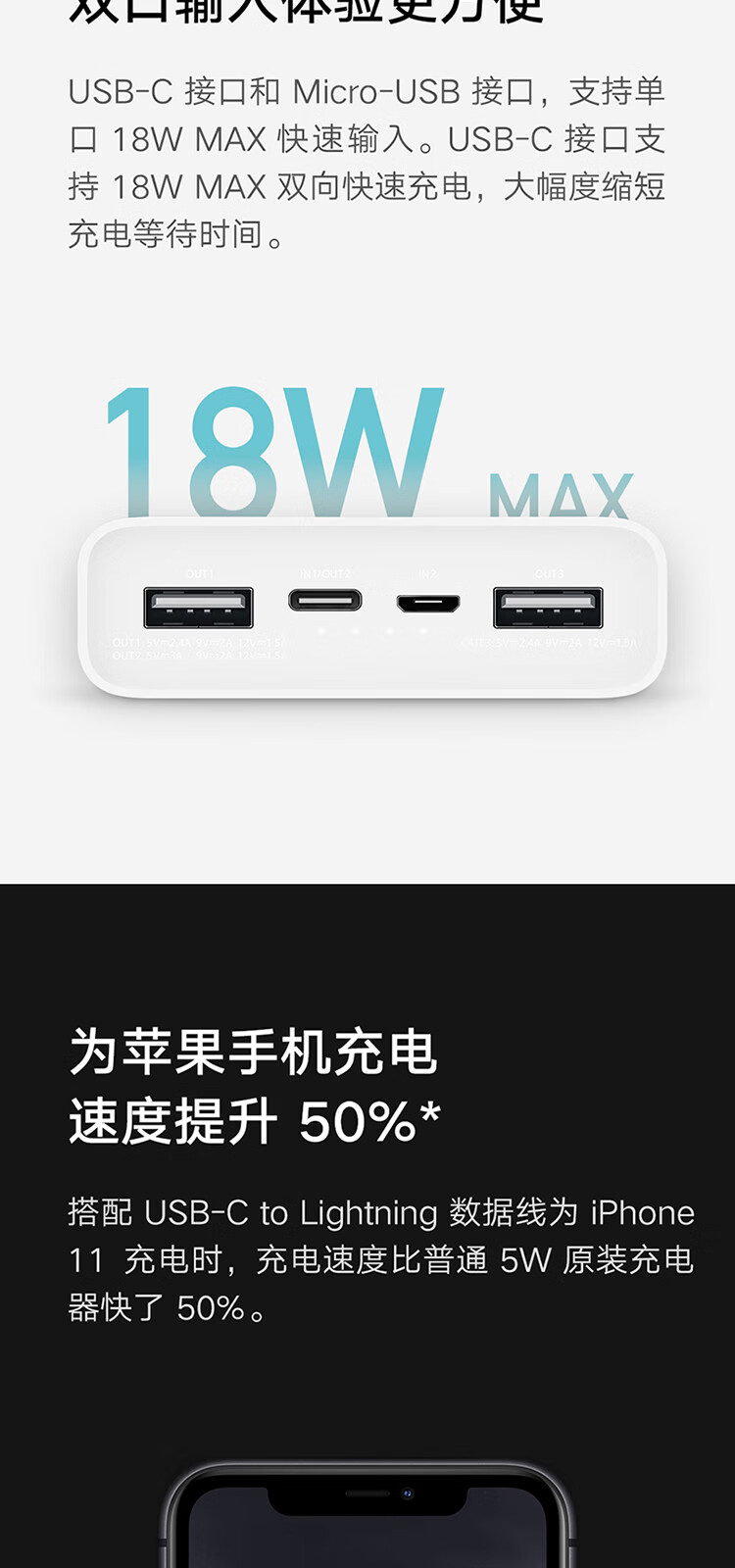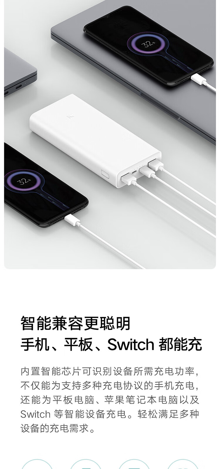 > 小米(MI)移动电源3 20000毫安时 18W快充充电宝 适用红米华为苹果手机平板电脑 储能户外电源 可上飞机 20000mAh USB-C双向快充版