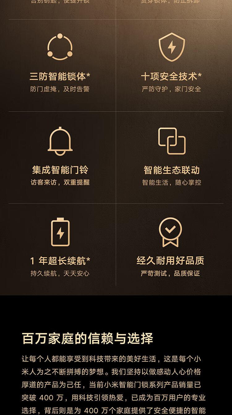 > 小米 智能门锁 E10 C级锁芯 指纹锁电子锁家用门锁 防盗门锁NFC密码锁