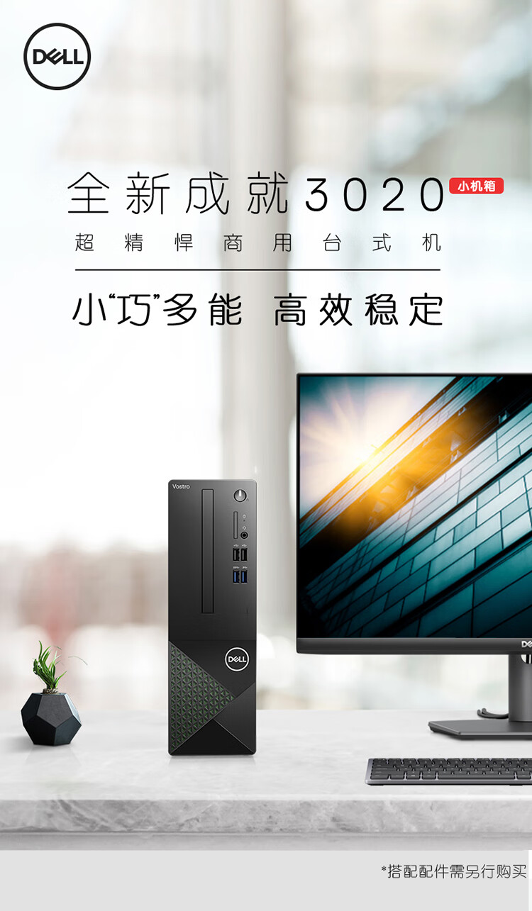 戴尔DELL成就3020台式机电脑主机 商用办公电脑整机 (13代i5-13400 16G 256GSSD 1TB)23.8英寸