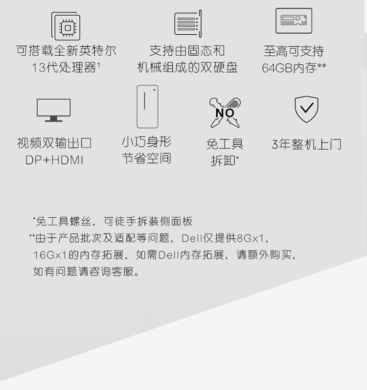 > 戴尔DELL成就3020台式机电脑主机 商用办公电脑整机 (13代i5-13400 16G 256GSSD 1TB)23.8英寸