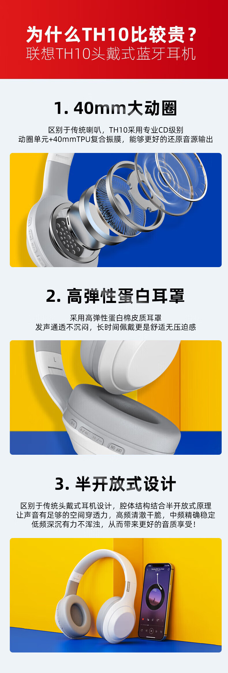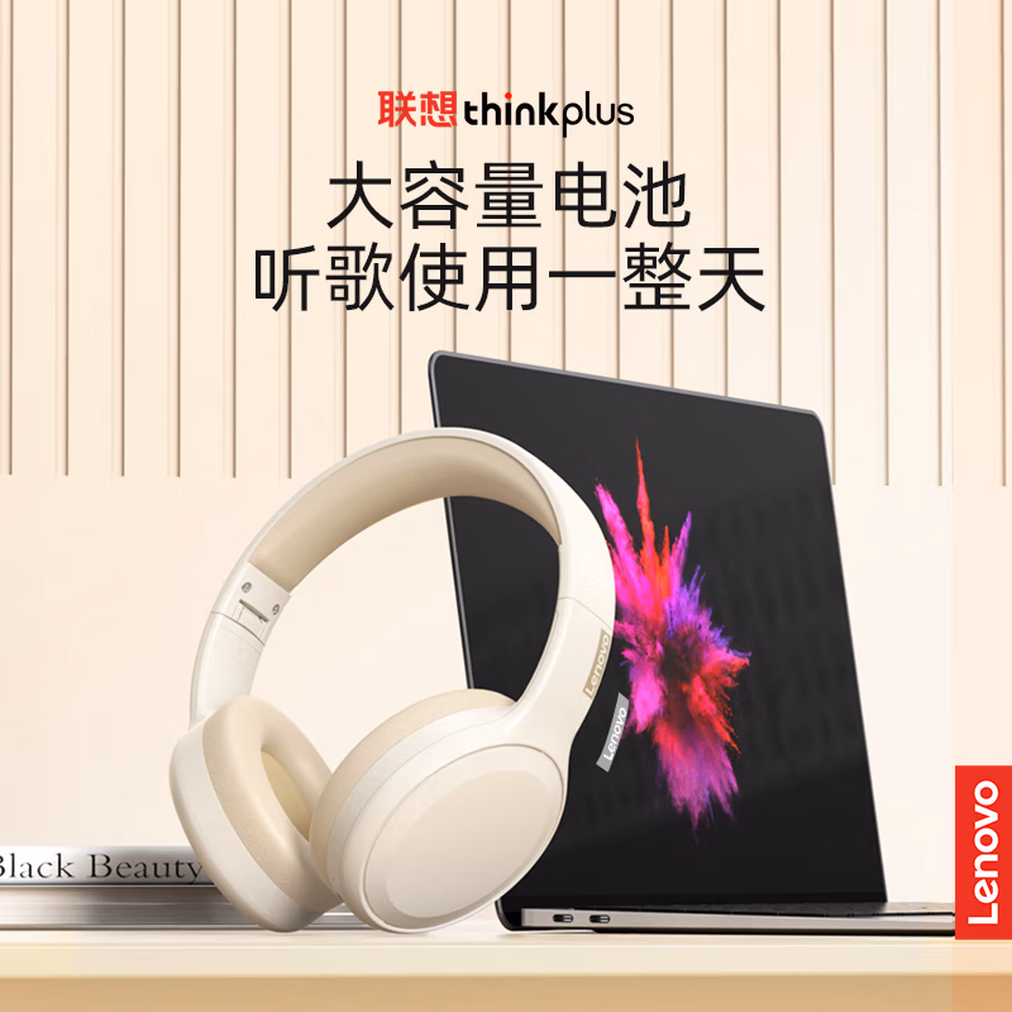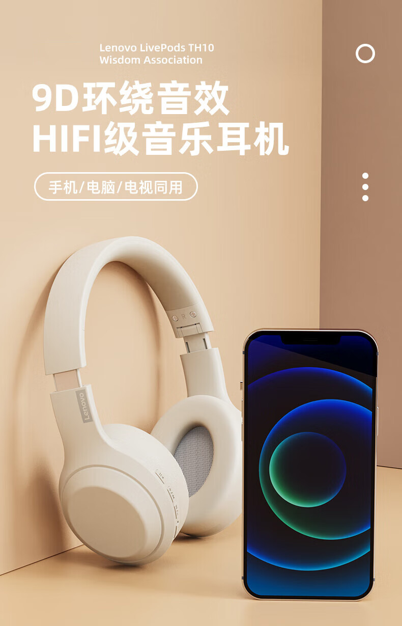 > 联想(Lenovo)真无线头戴式蓝牙耳机 电脑游戏电竞降噪跑步运动音乐网课耳麦 适用苹果华为thinkplus TH30米白