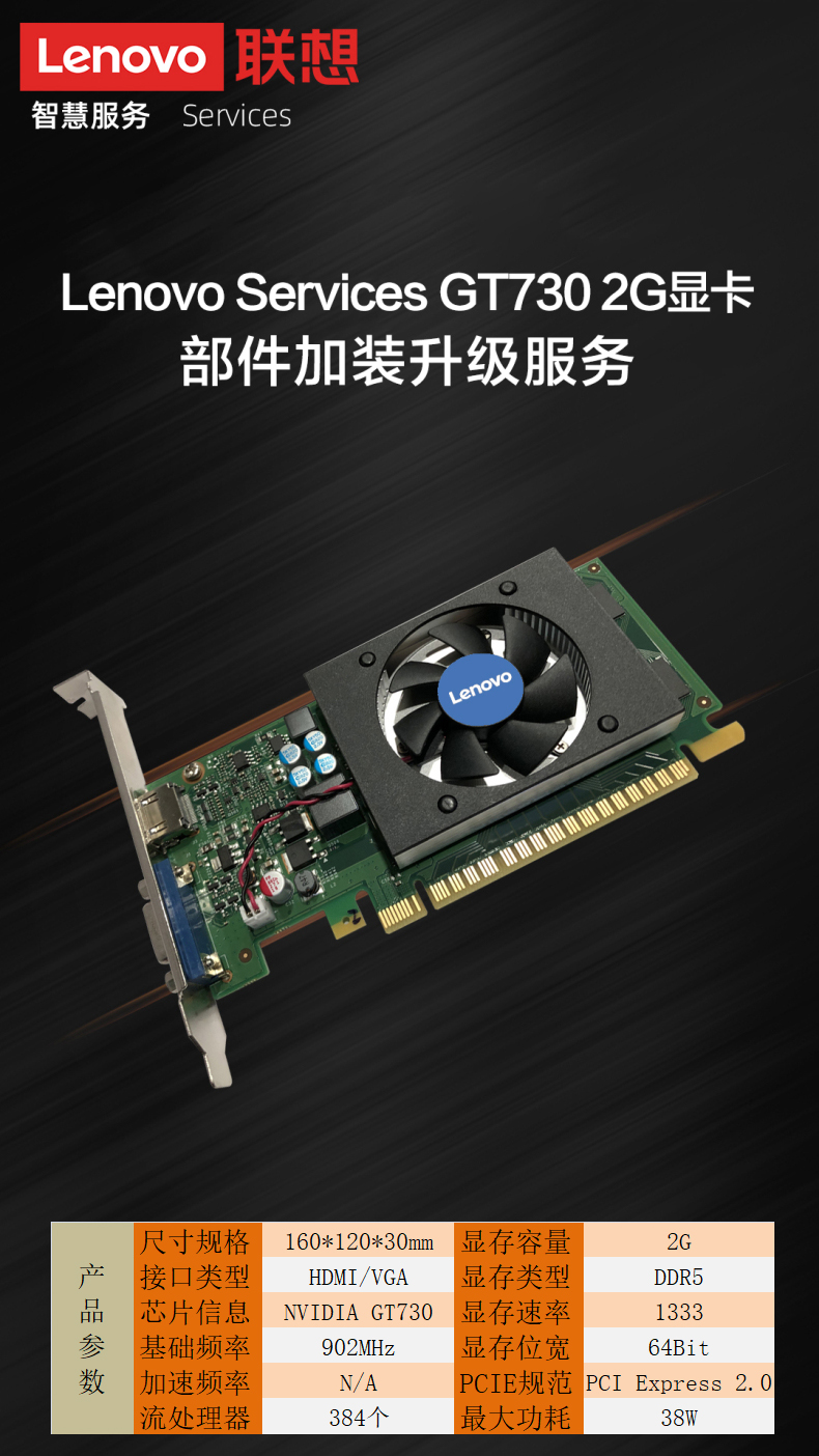 联想(LENOVO) 台式机显卡/独显 PCI-E 2.0/3.0小机箱电脑显卡 联想【GT705】1G 适合双显示器扩展