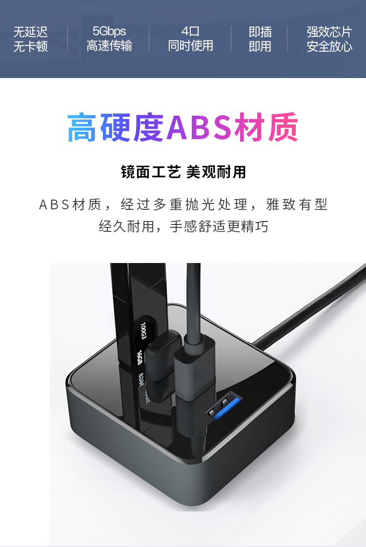 联想USB分线器3.0接口转换器四合一扩展坞转接头HUB集线器USB延长线一拖多笔记本/台式机转换器1.5m
