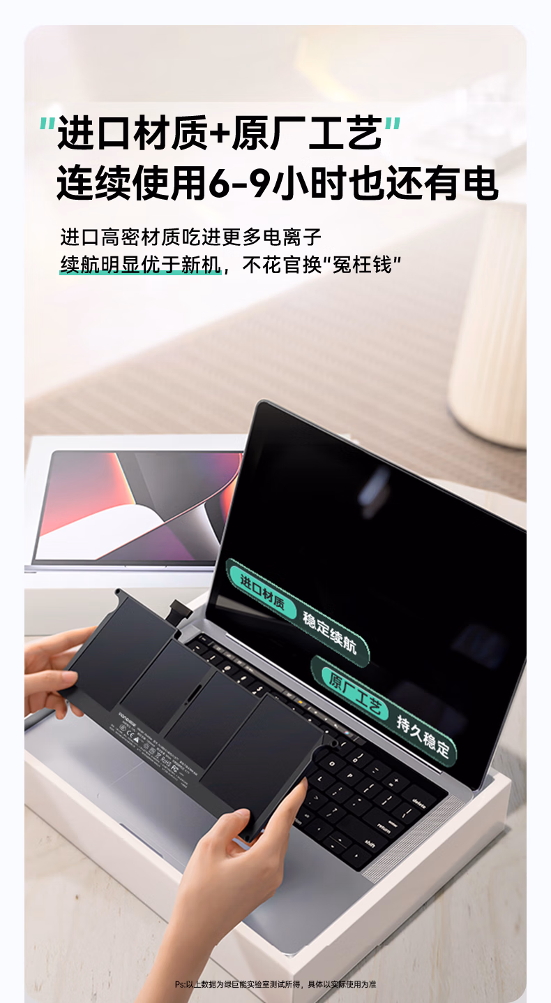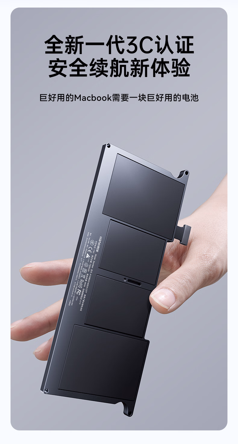 > 绿巨能(llano)适用苹果笔记本电池A1466 A1496 A1405 A1369 A1377适用于MacBook Air 13英寸电脑电池