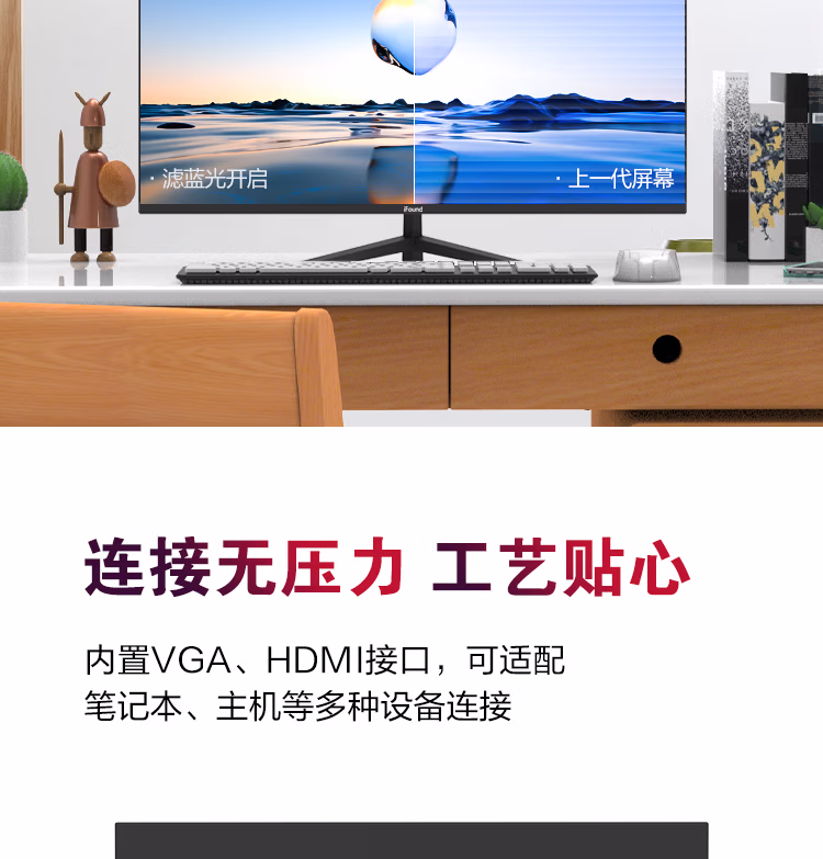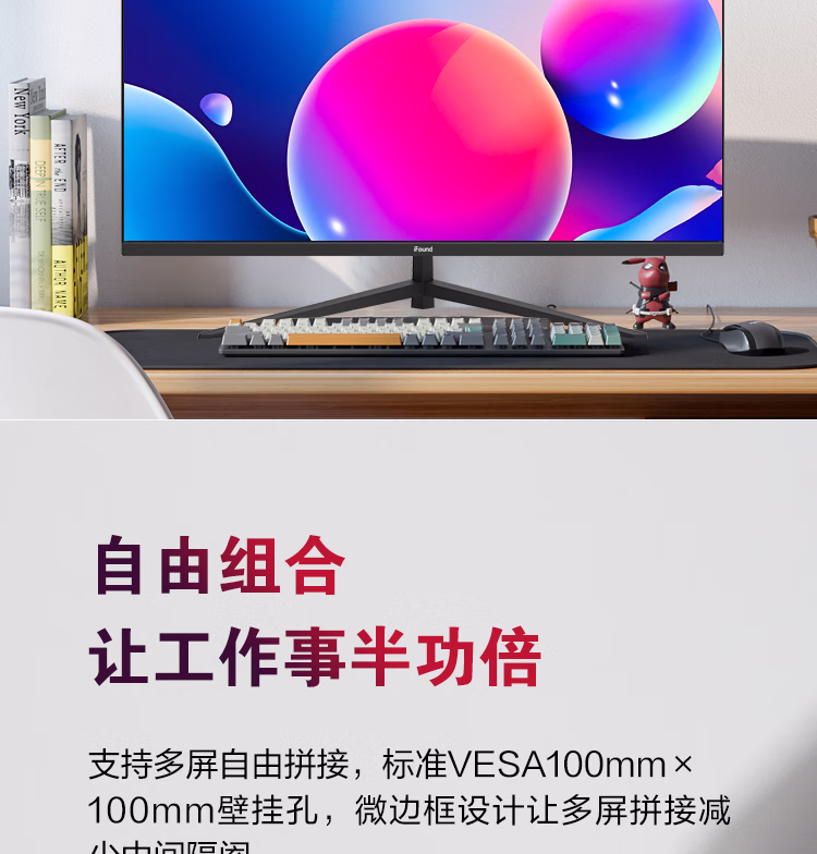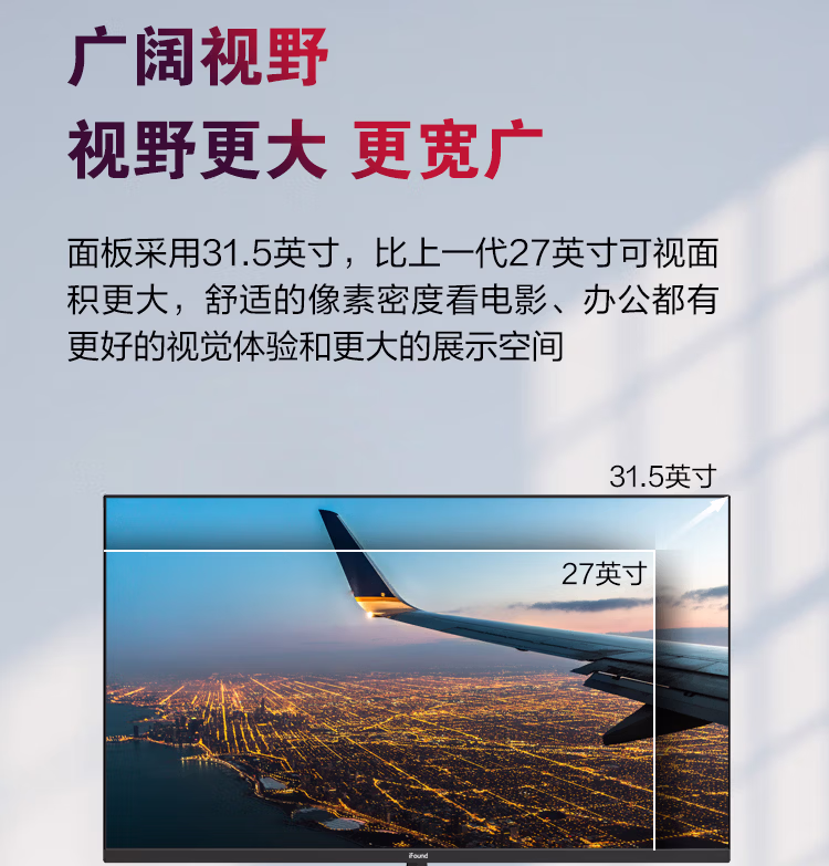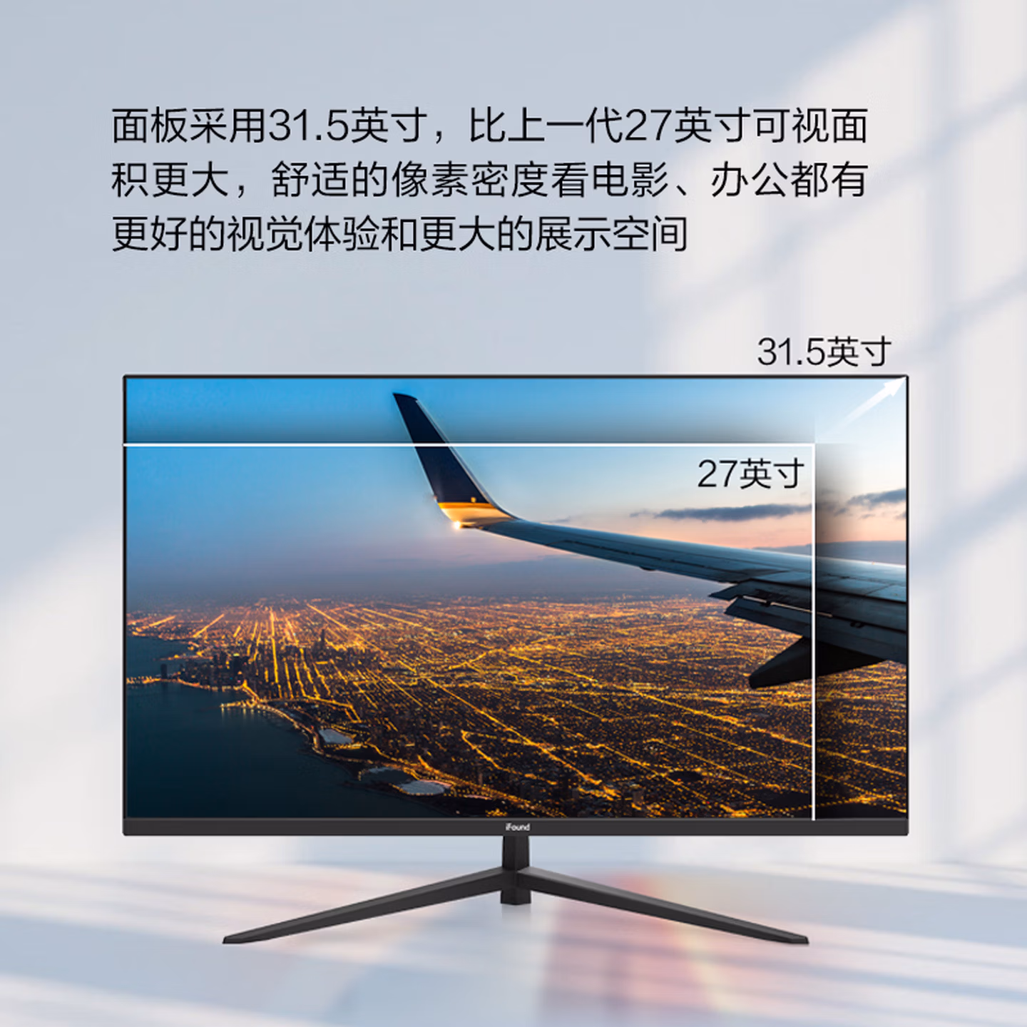 > ifound 31.5英寸 商务大屏显示器 全高清 75Hz HDR10 104%sRGB 微边框 低蓝光护眼 可壁挂 显示屏 32NF7R2V